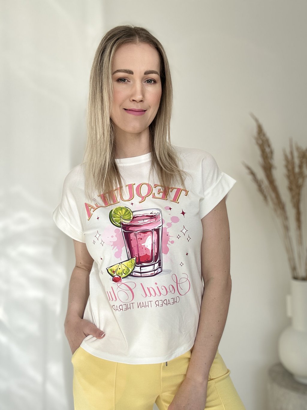 Moderné bavlnené tričko s krátkym rukávom a umeleckou aplikáciou.