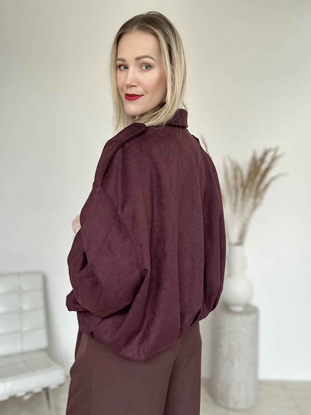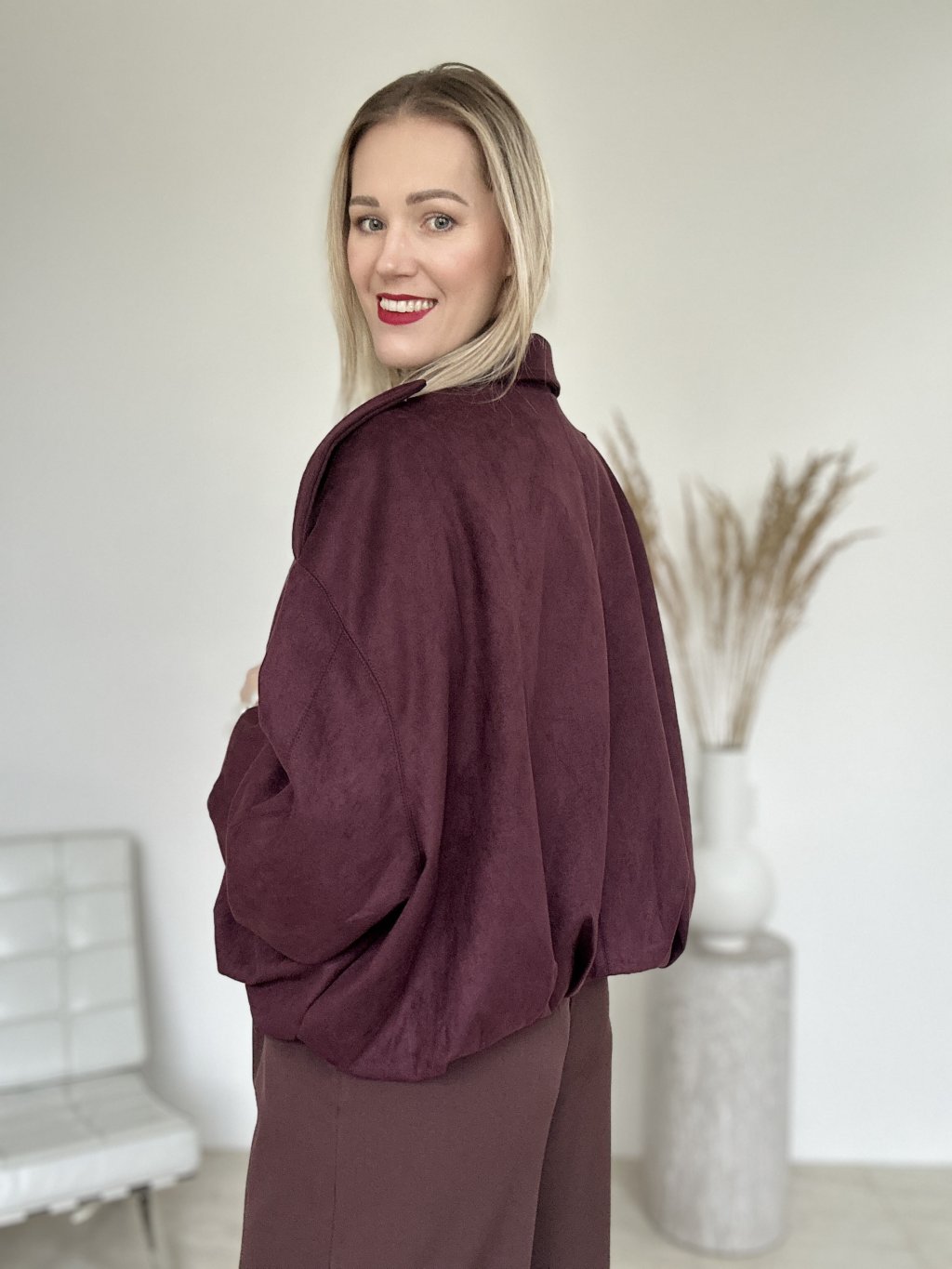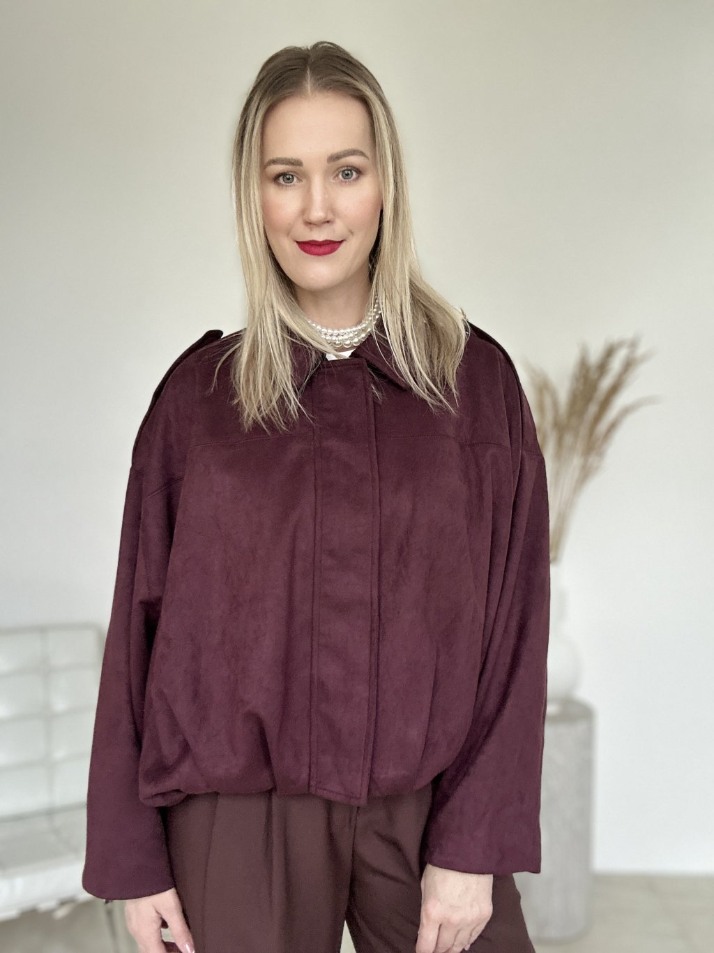 Semišová bunda s golierom. Štýlová a univerzálna bunda, ktorá kombinuje ležérny vzhľad s nádychom elegancie. Vyrobená z jemného semišového materiálu pôsobí nadčasovo a ľahko sa kombinuje s rôznymi outfitmi. Zapínanie na zips doplnené o cvoky dodáva bunde moderný detail a praktickosť. Vďaka príjemnému materiálu poskytuje komfort počas celého dňa, dodá outfitu šmrnc a štýlovú uvoľnenosť.