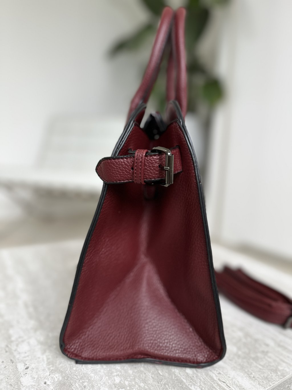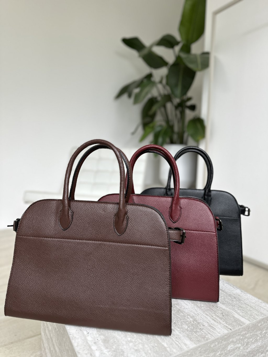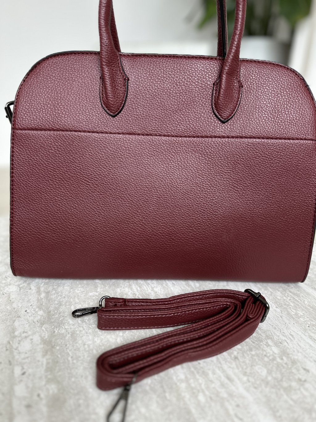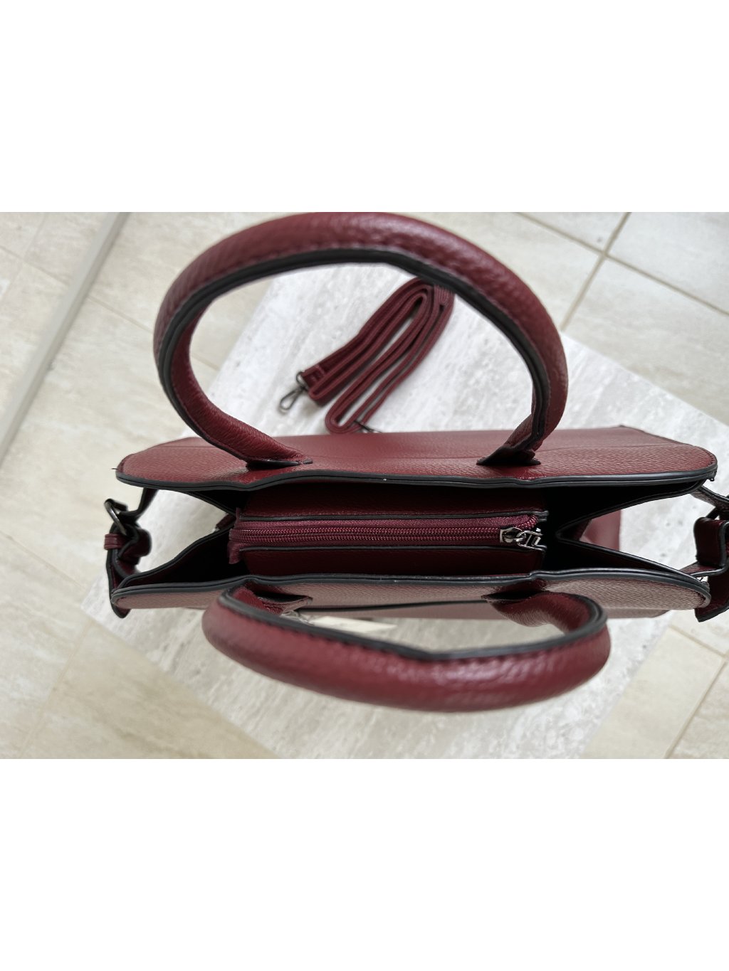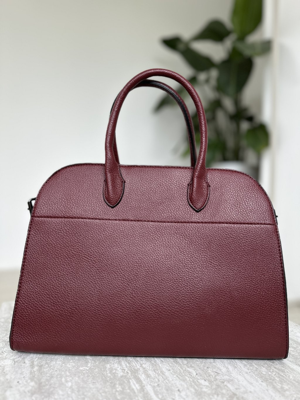 Klasická nadčasová koženková kabelka s minimalistickým dizajnom s jedným vodorovným švom. Kabelka má dve pevné rúčky na nosenie v ruke.