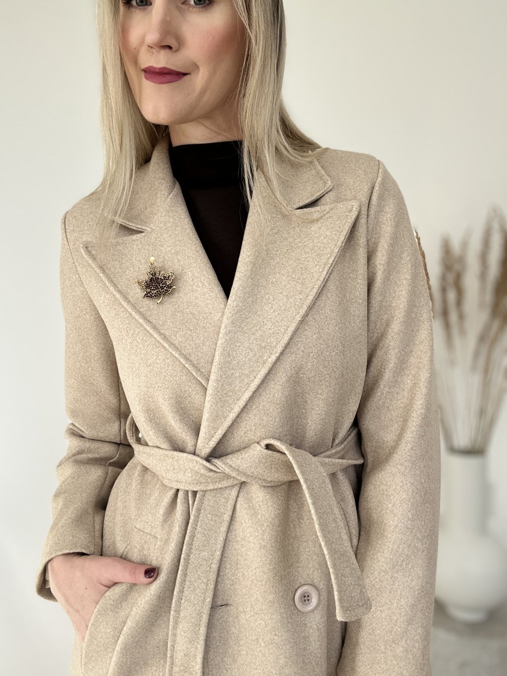 Pekná jednoduchá brošňa v tvare jesenného lístka .