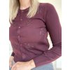 Bordový dámsky pulóver s dlhými rukávmi, gombíkmi a zdobený kvetinovým motívom. Ma okrúhly výstrih a je vyrobený z pleteného materiálu a pôsobí elegantne a vkusne.