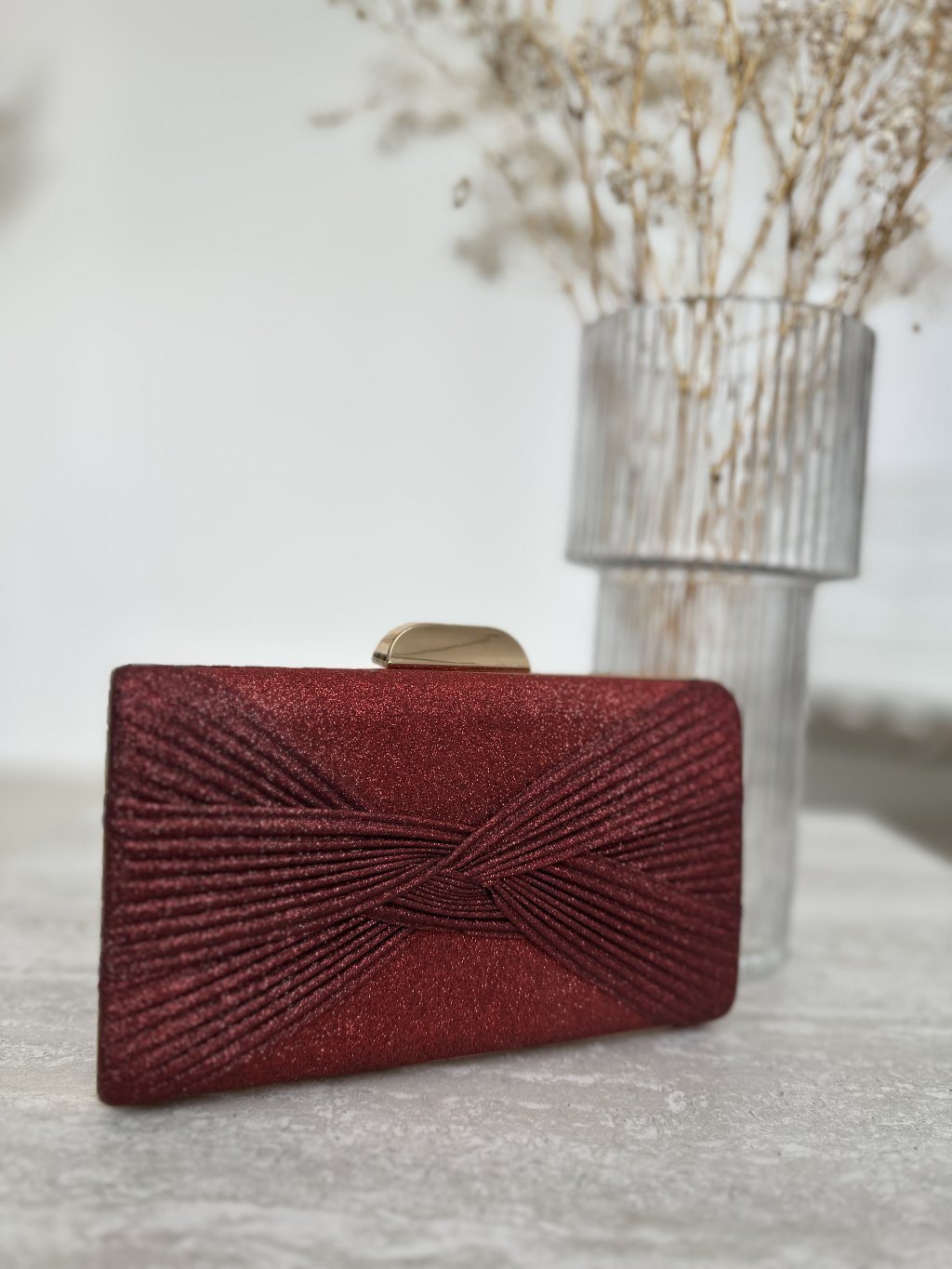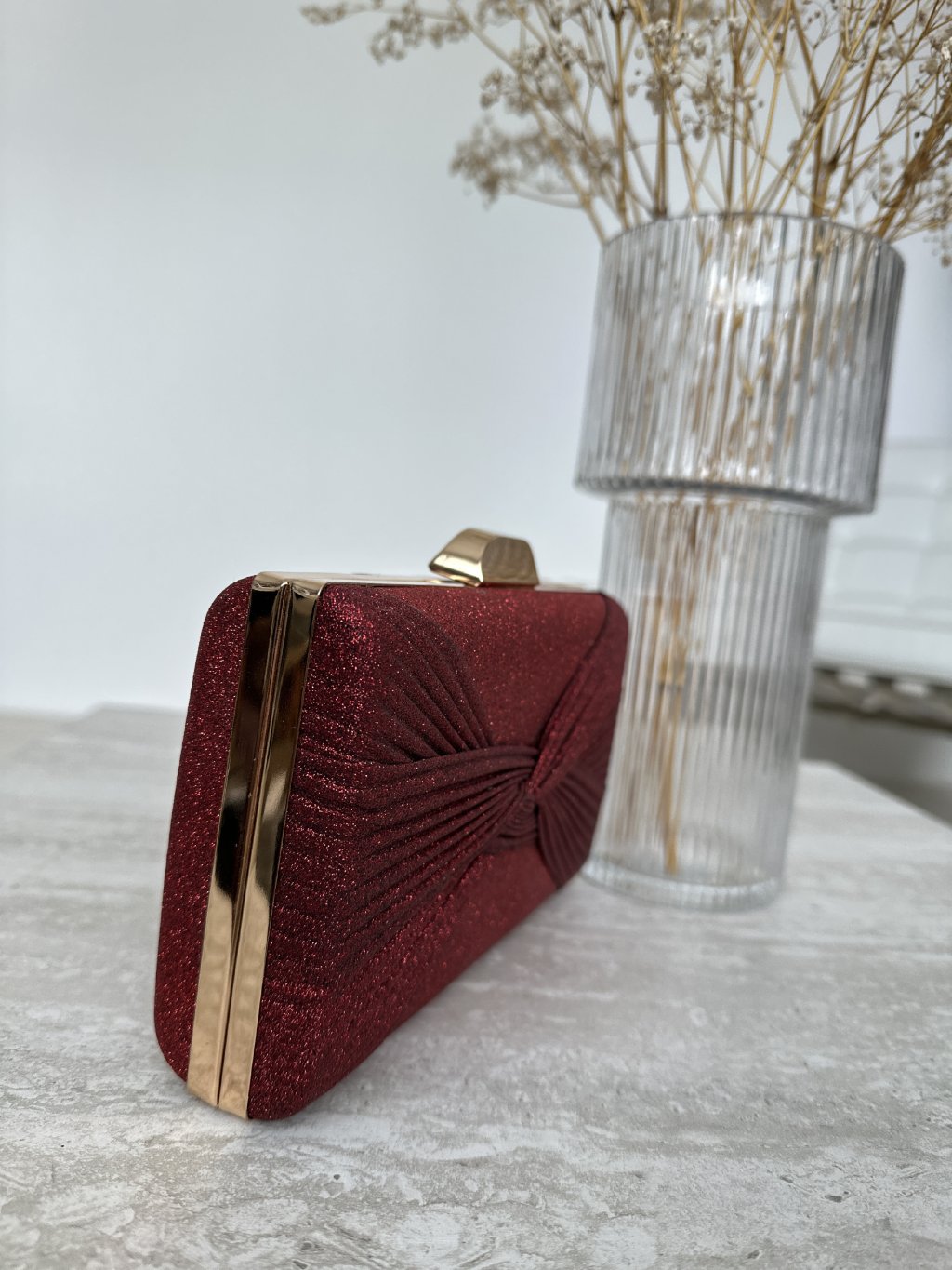 Červená trblietavá clutch kabelka je štýlový spoločenský doplnok ideálny na špeciálne udalosti, ako sú svadby, plesy alebo večierky. Kabelka, často označovaná ako listová kabelka, je navrhnutá tak, aby sa nosila v ruke, hoci mnohé modely, vrátane podobných vizuálnych nálezov, sa dodávajú s odnímateľným retiazkovým remienkom na nosenie cez rameno.