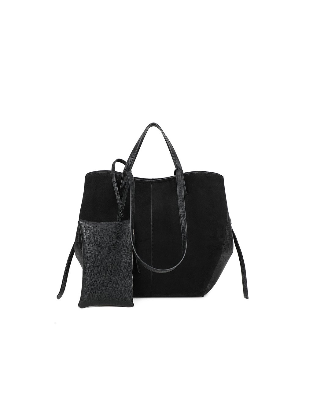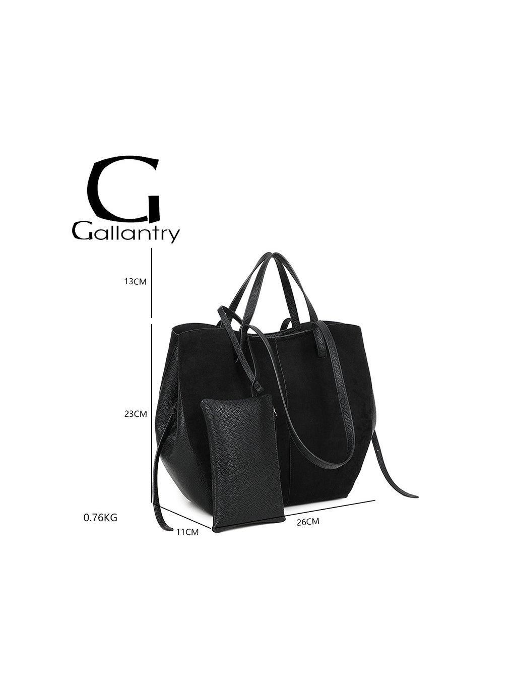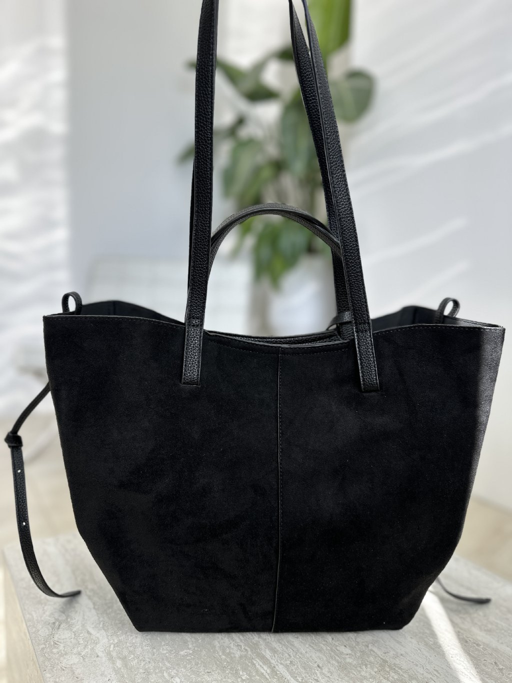 Čierna semišová shopper kabelka GALLANTRY ktorá pôsobí nadčasovo a prakticky, vhodná pre rôzne príležitosti.