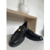 Čierne lakované mokasíny s ozdobnou prackou. Vhodné na prechodné obdobie.