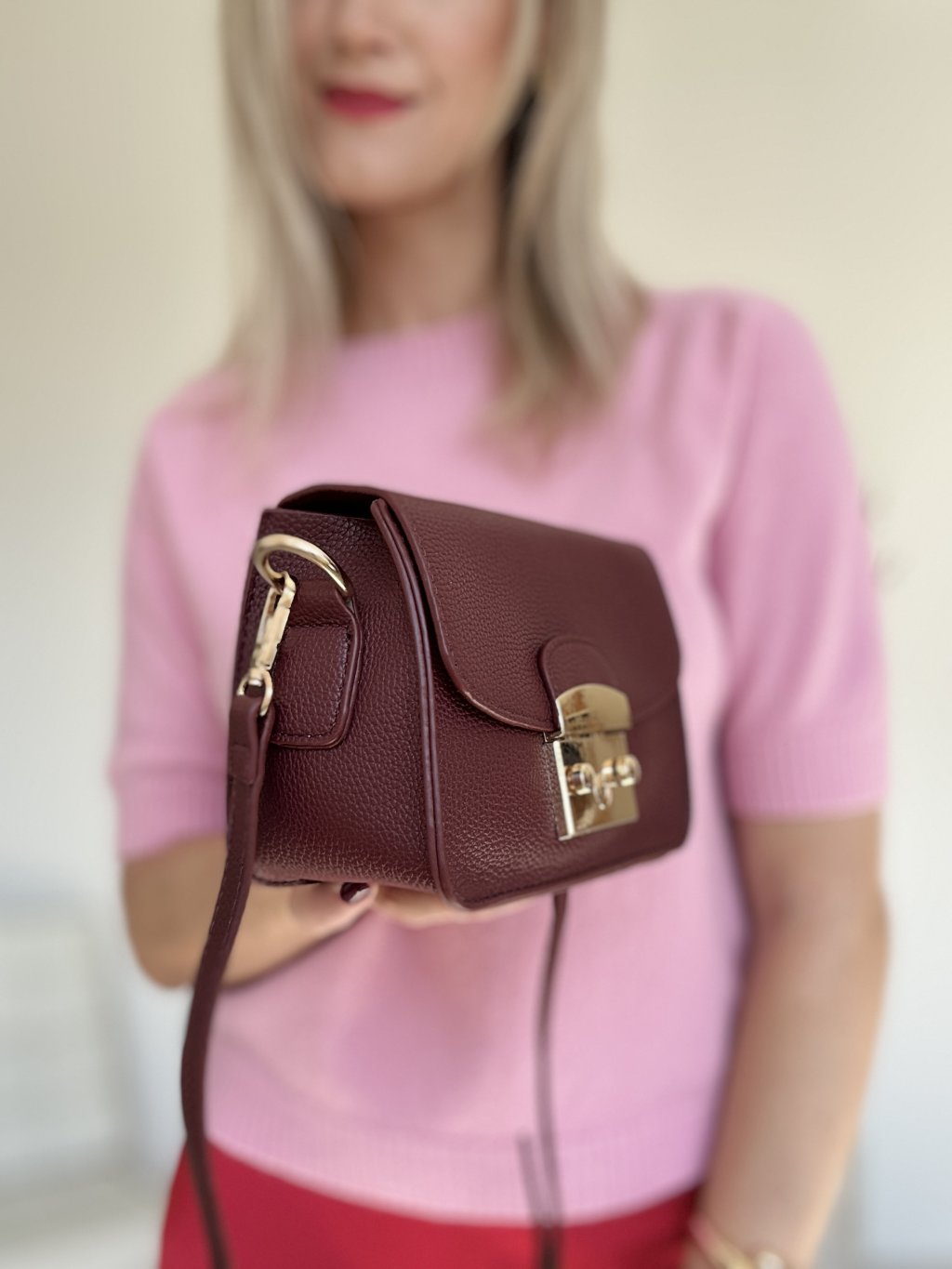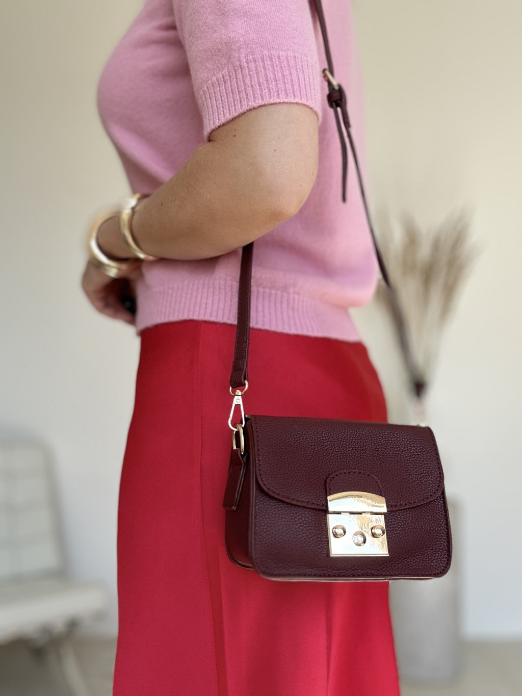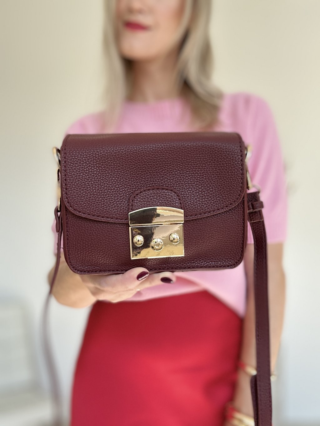 Menšia minimalistická bordová crosbody kabelka s ramienkom.