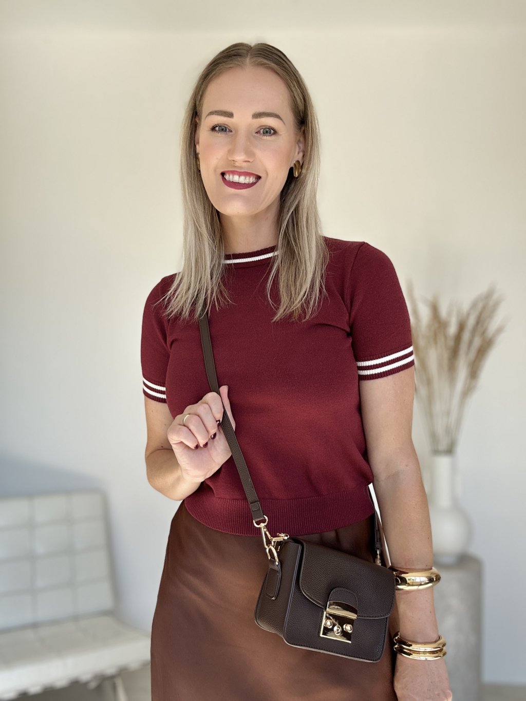 Menšia minimalistická bordová crosbody kabelka s ramienkom.