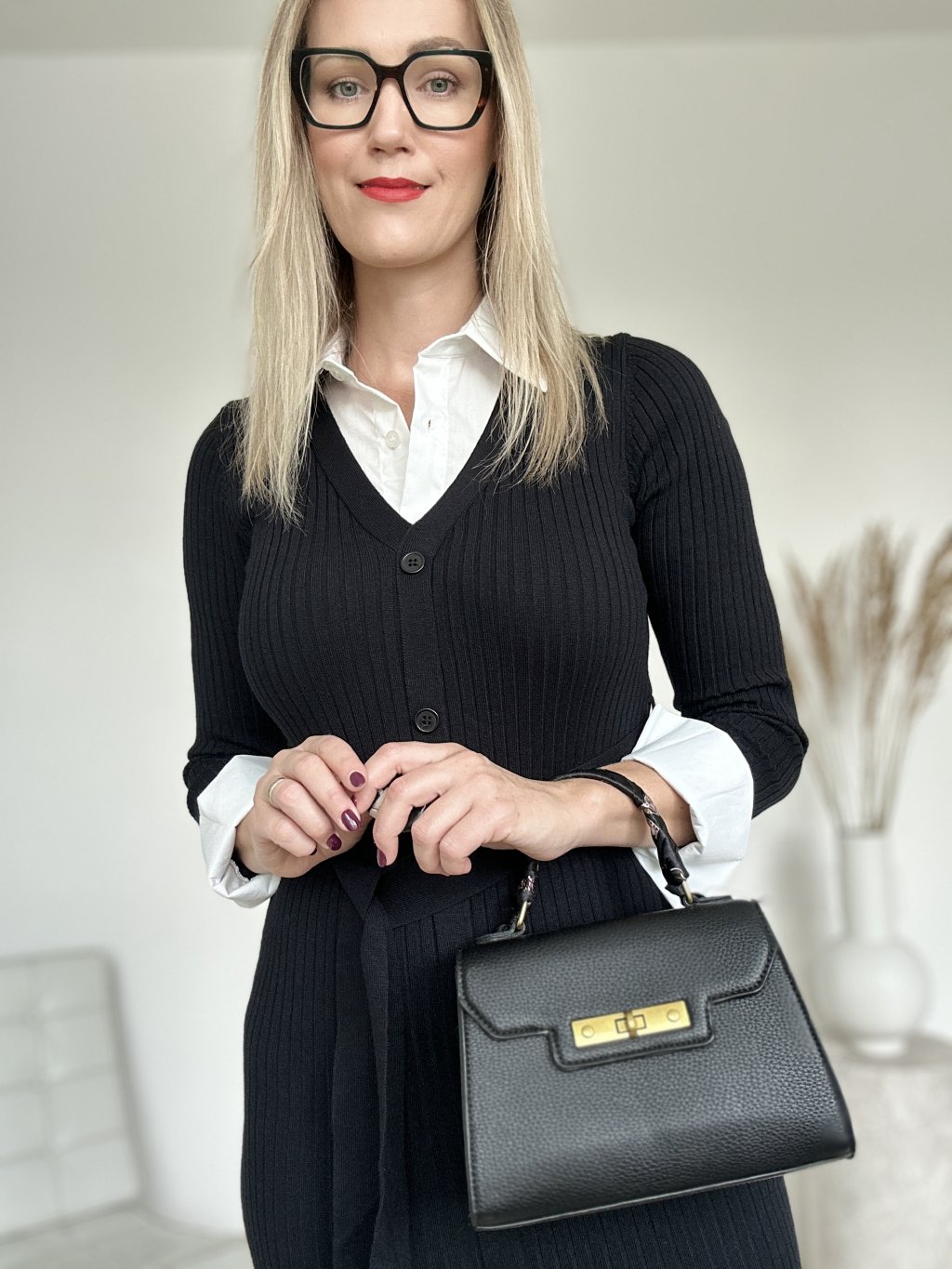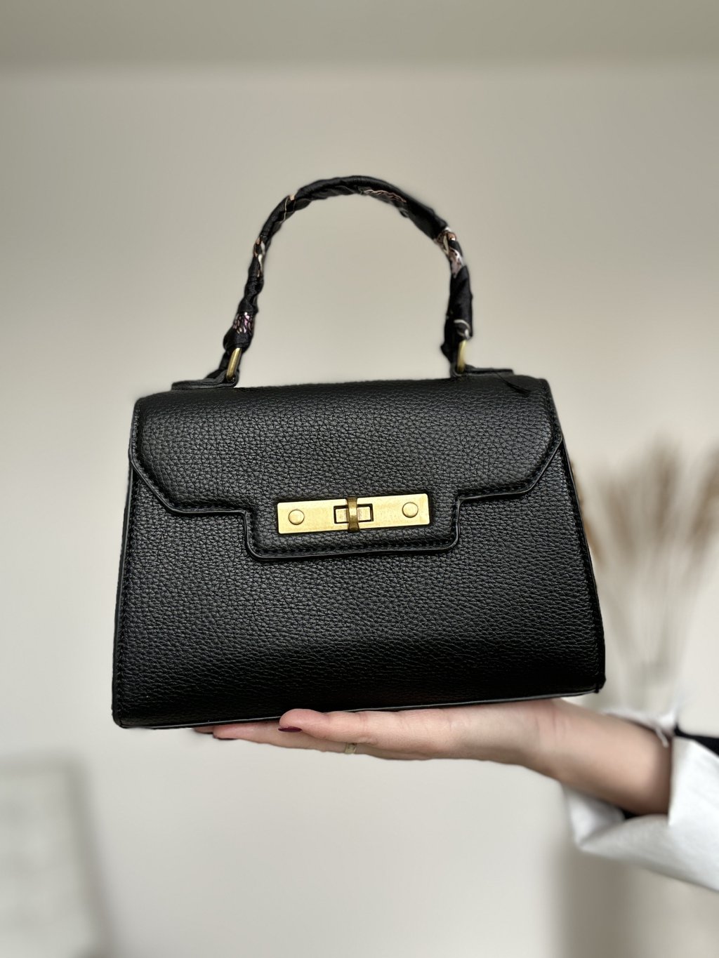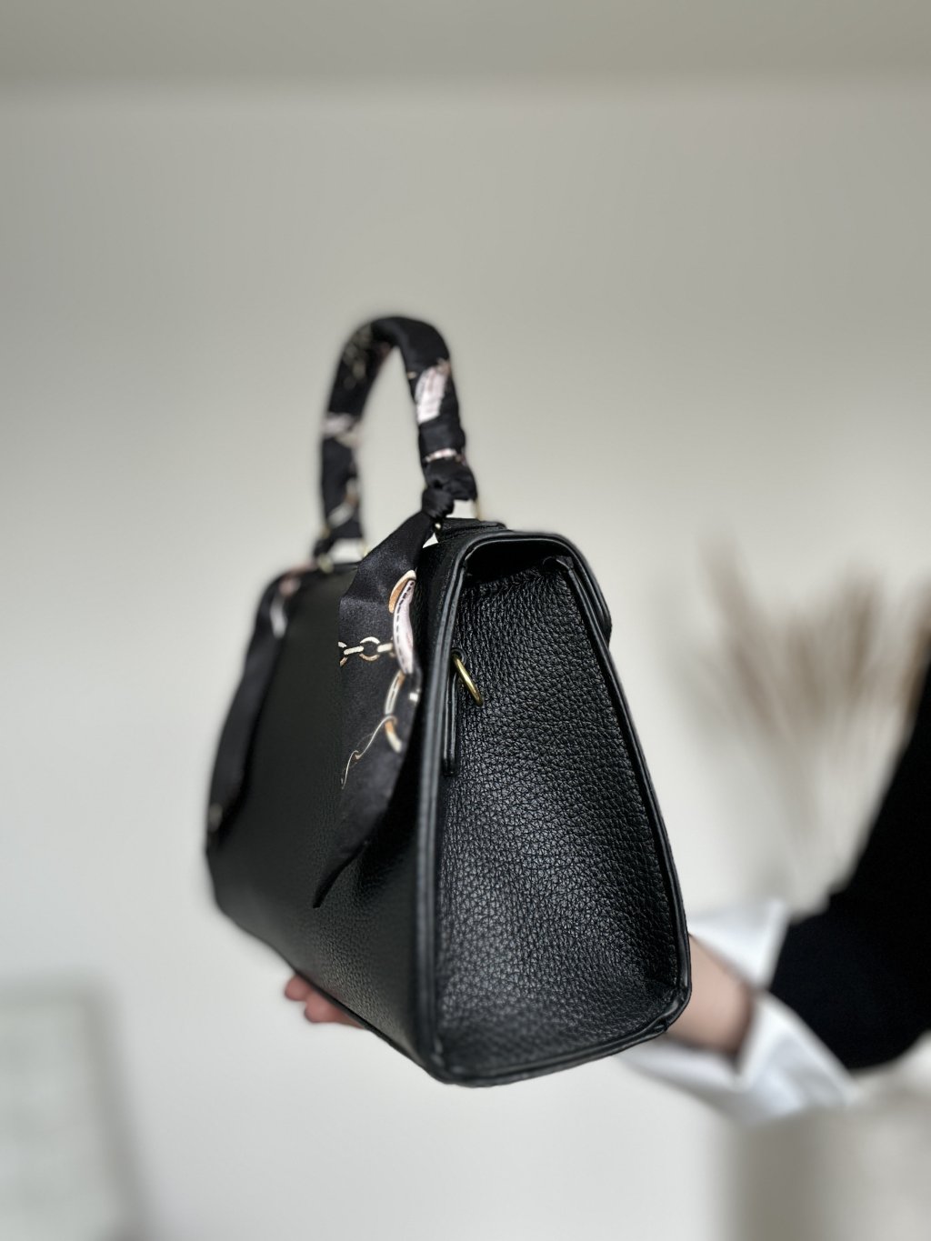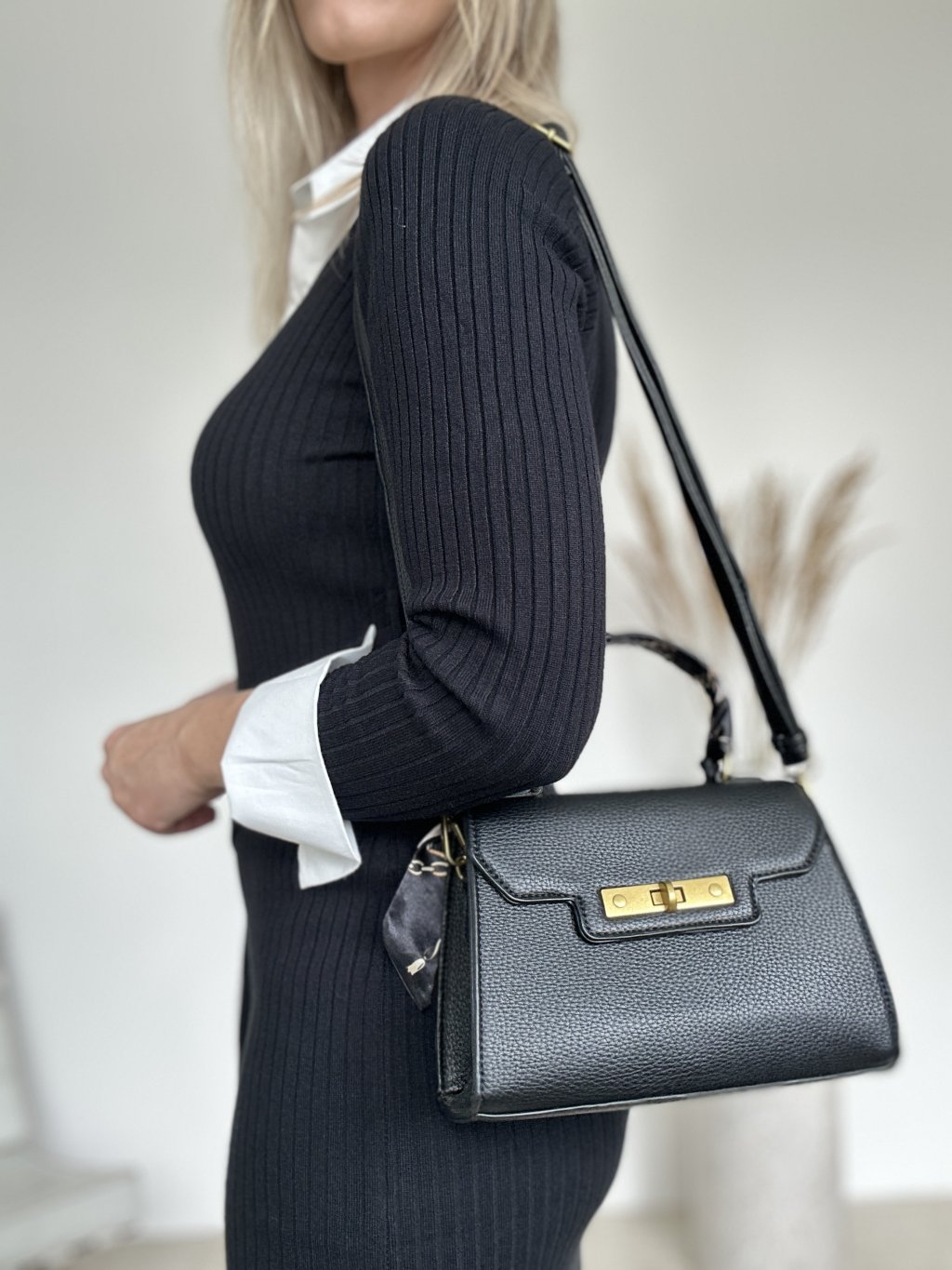 Čierna dizajnová štruktúrovaná crossbody kabelka z kvalitnej imitácie kože.