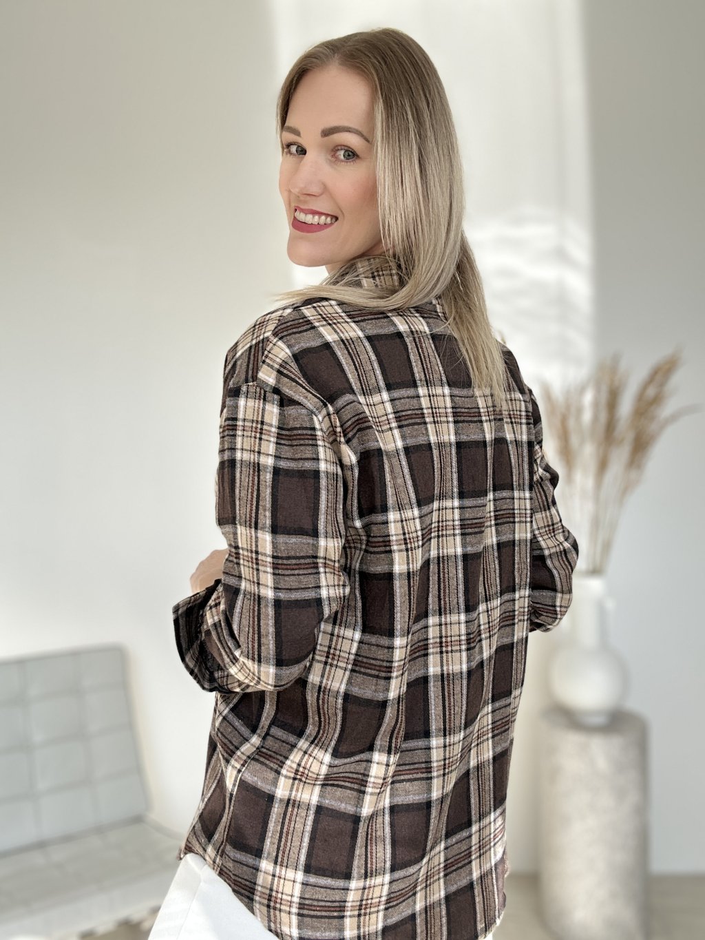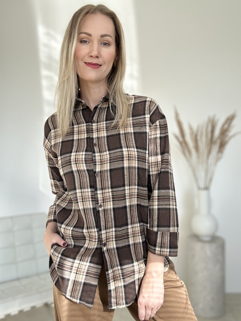 Klasická bavlnená karovaná košeľa s dlhým rukávom a zapínaním na gombíky.
