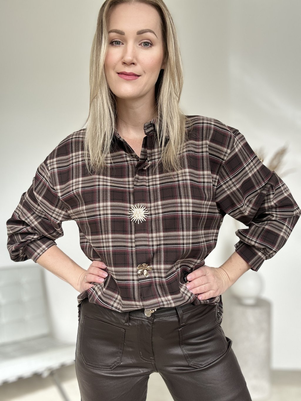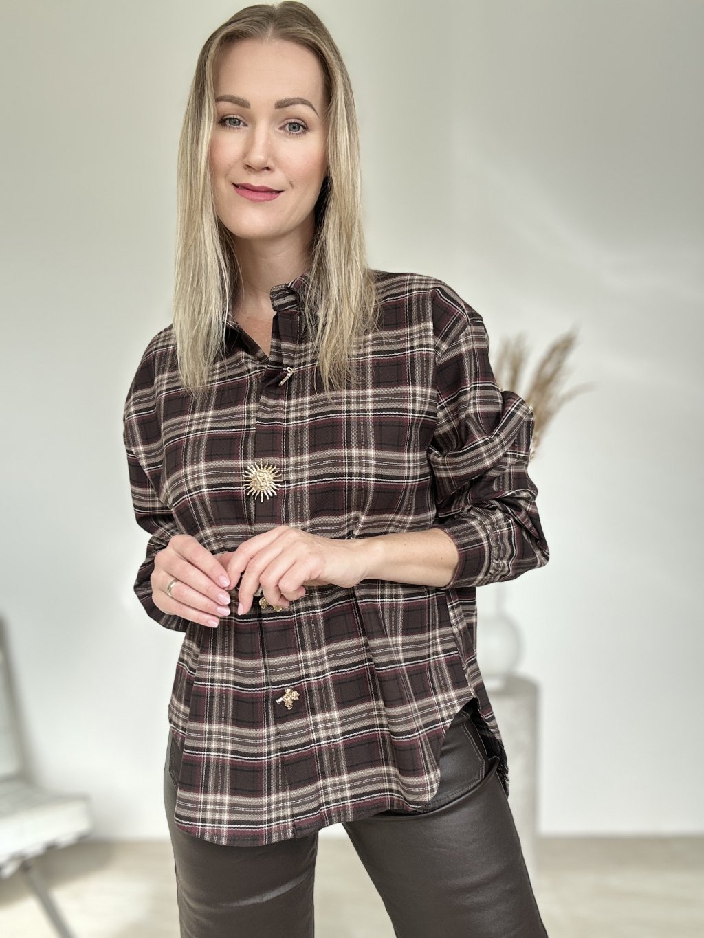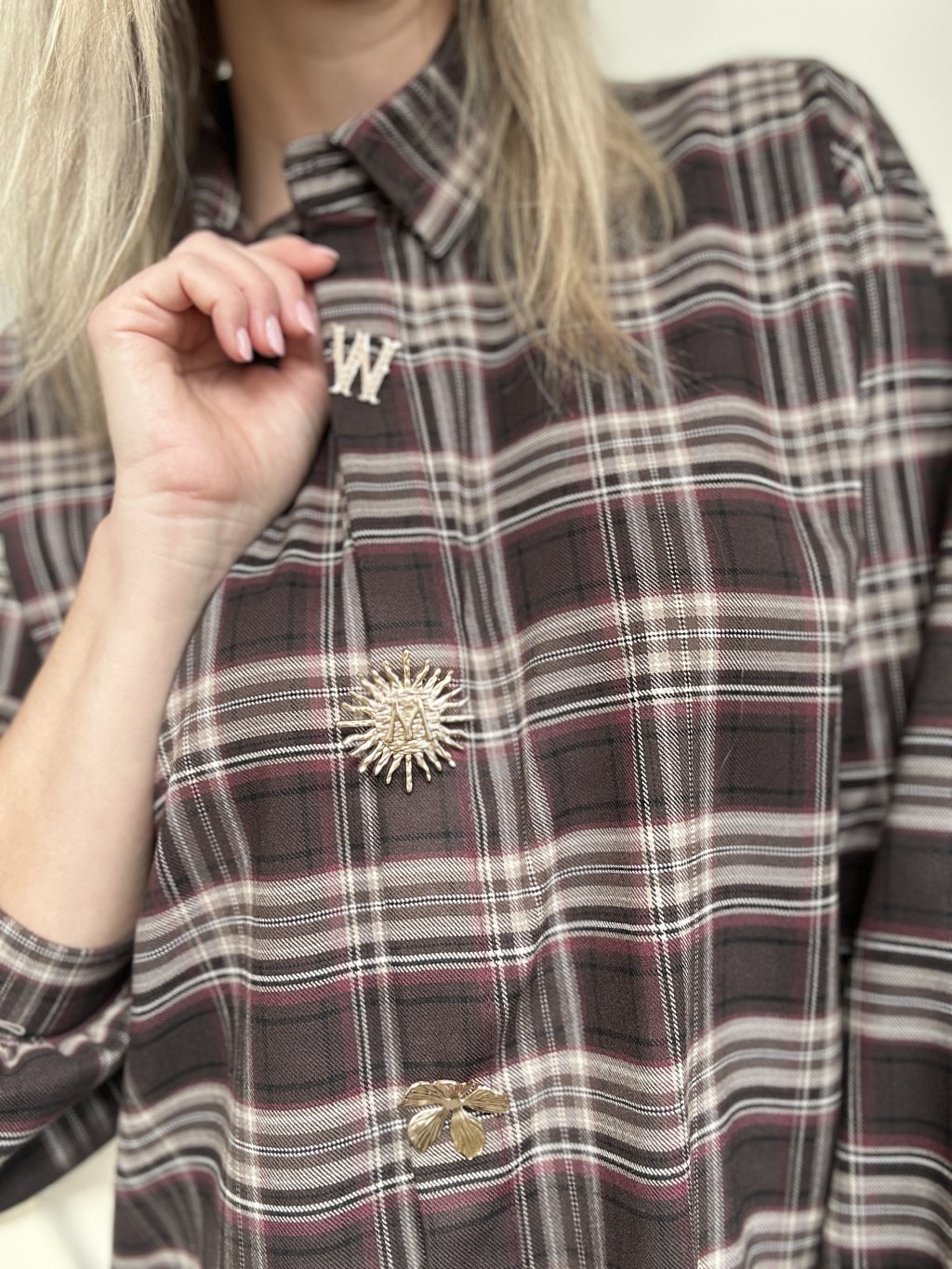 Moderná premium karovaná košeľa s odopínateľnými brošňami , zapínanie na klasické gombíky a strih jemne predĺžený.