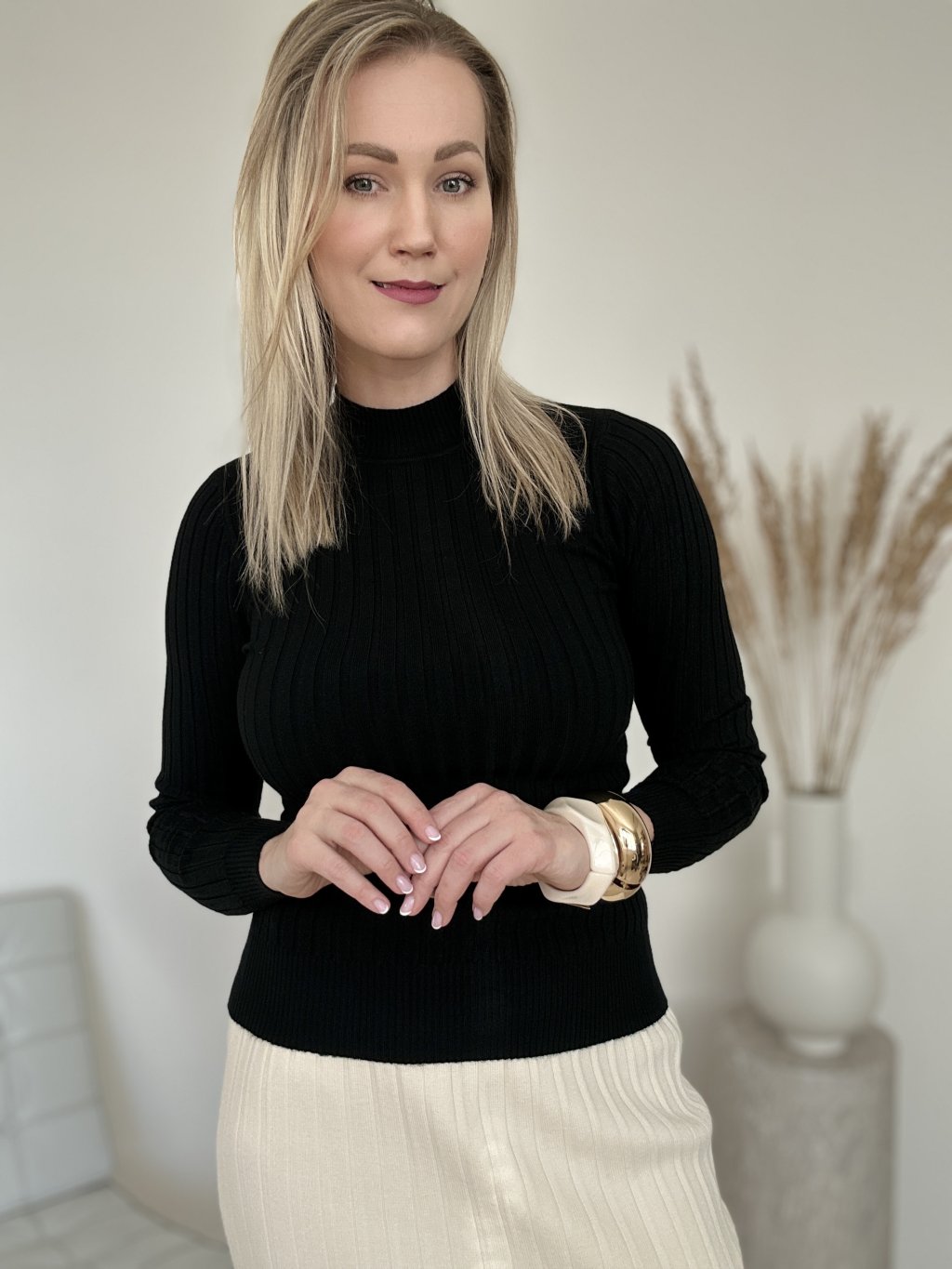 Klasický elastický prijemný polorolák perfektne kombinovateľný.