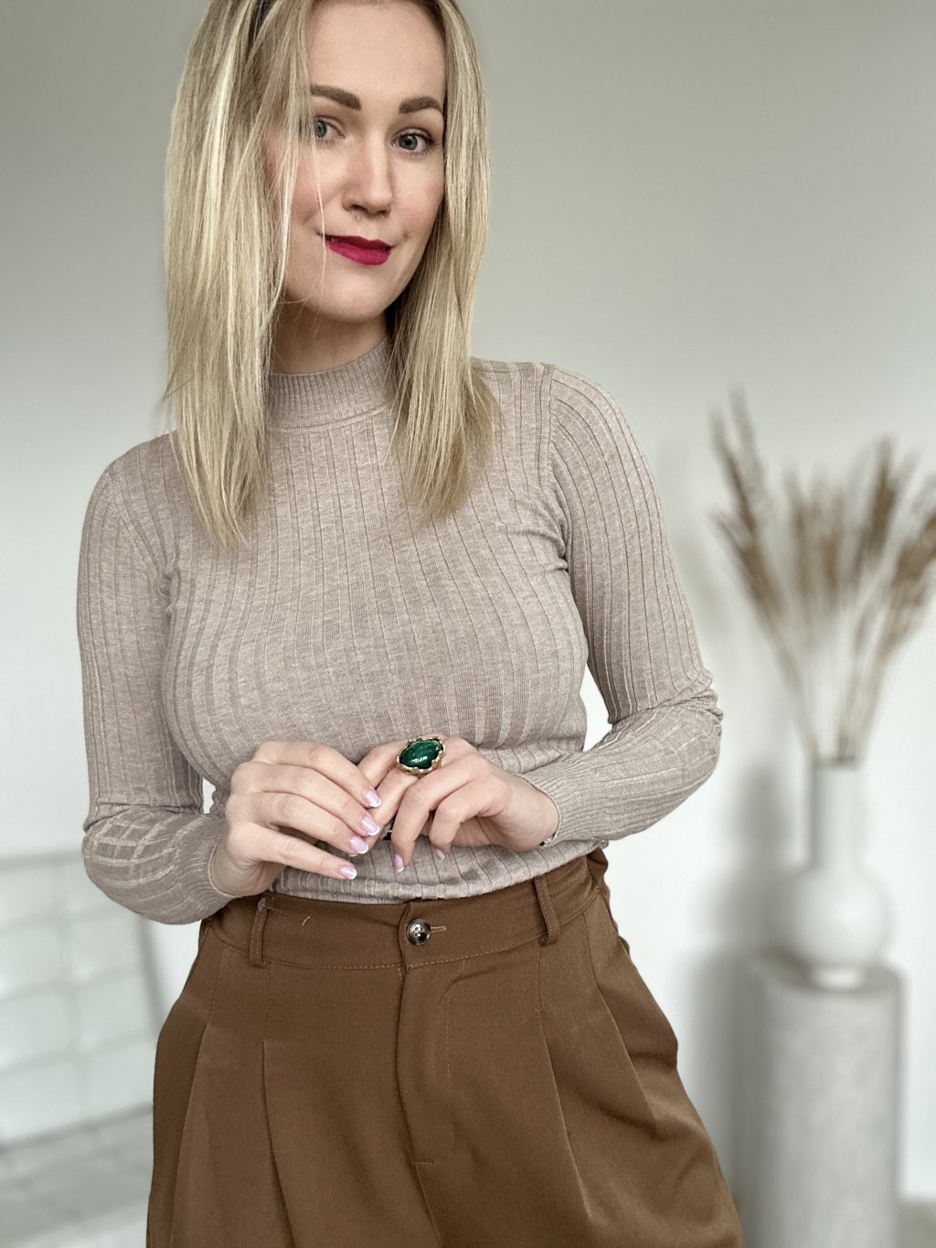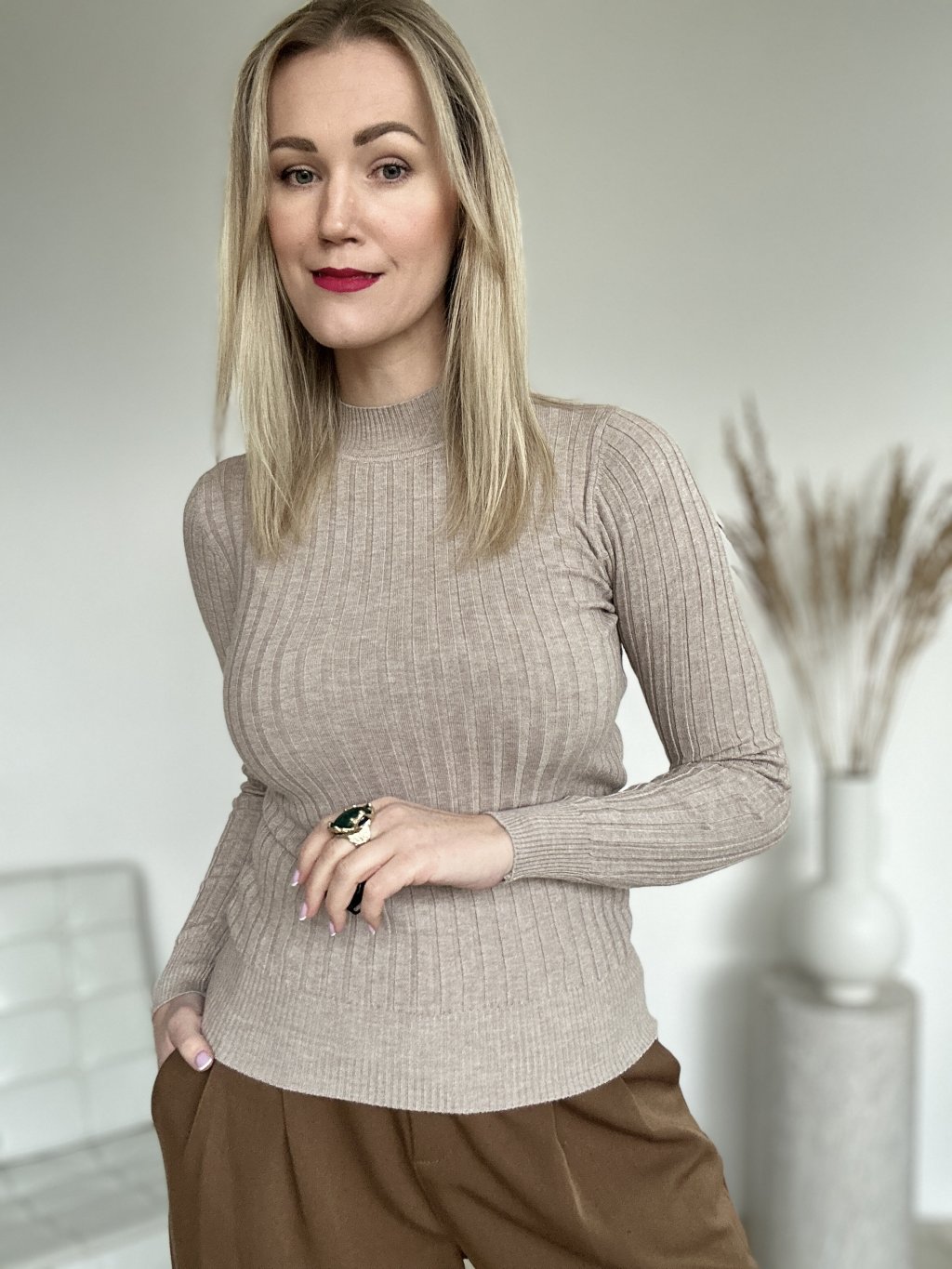 Klasický elastický prijemný polorolák perfektne kombinovateľný.