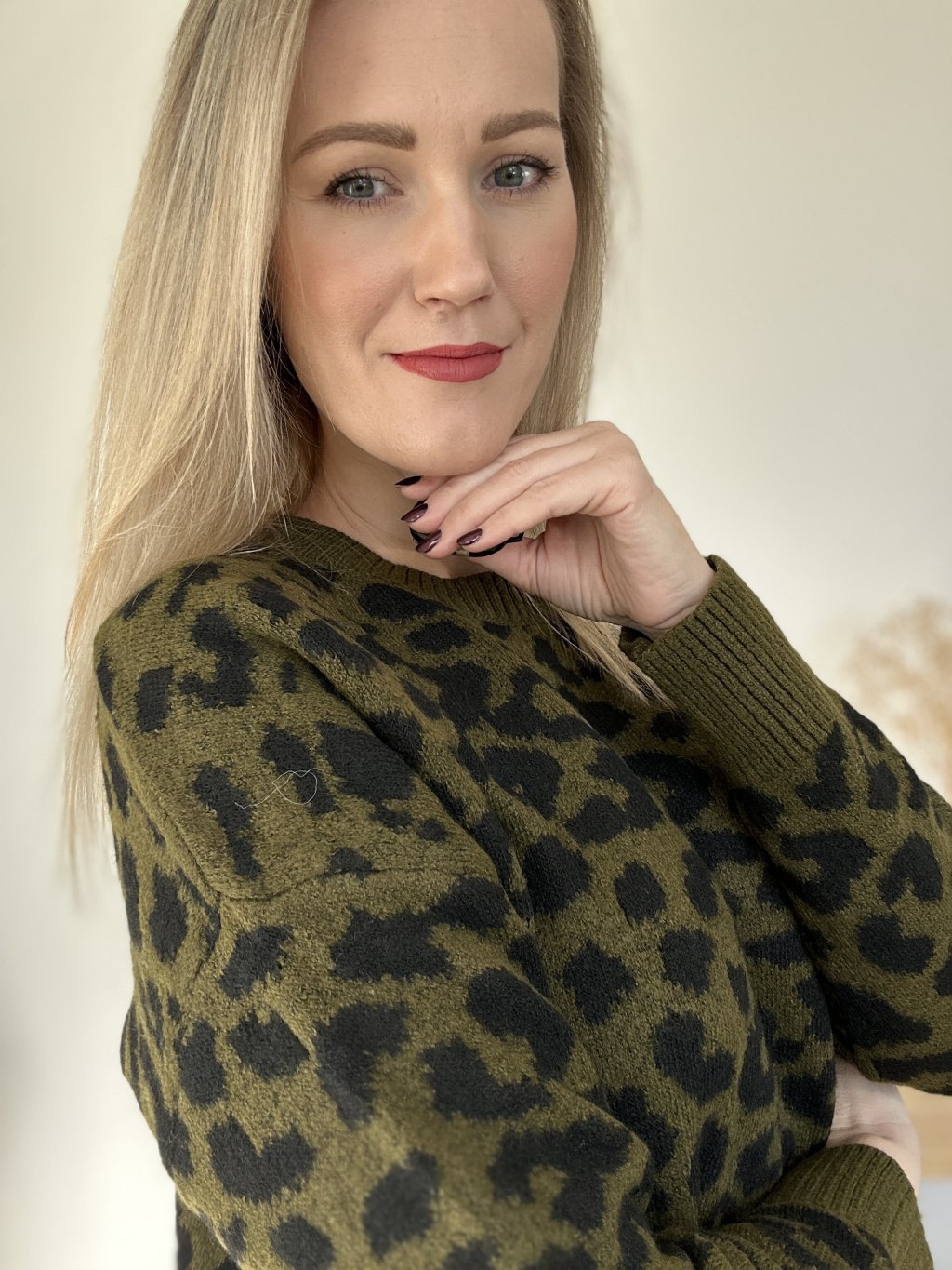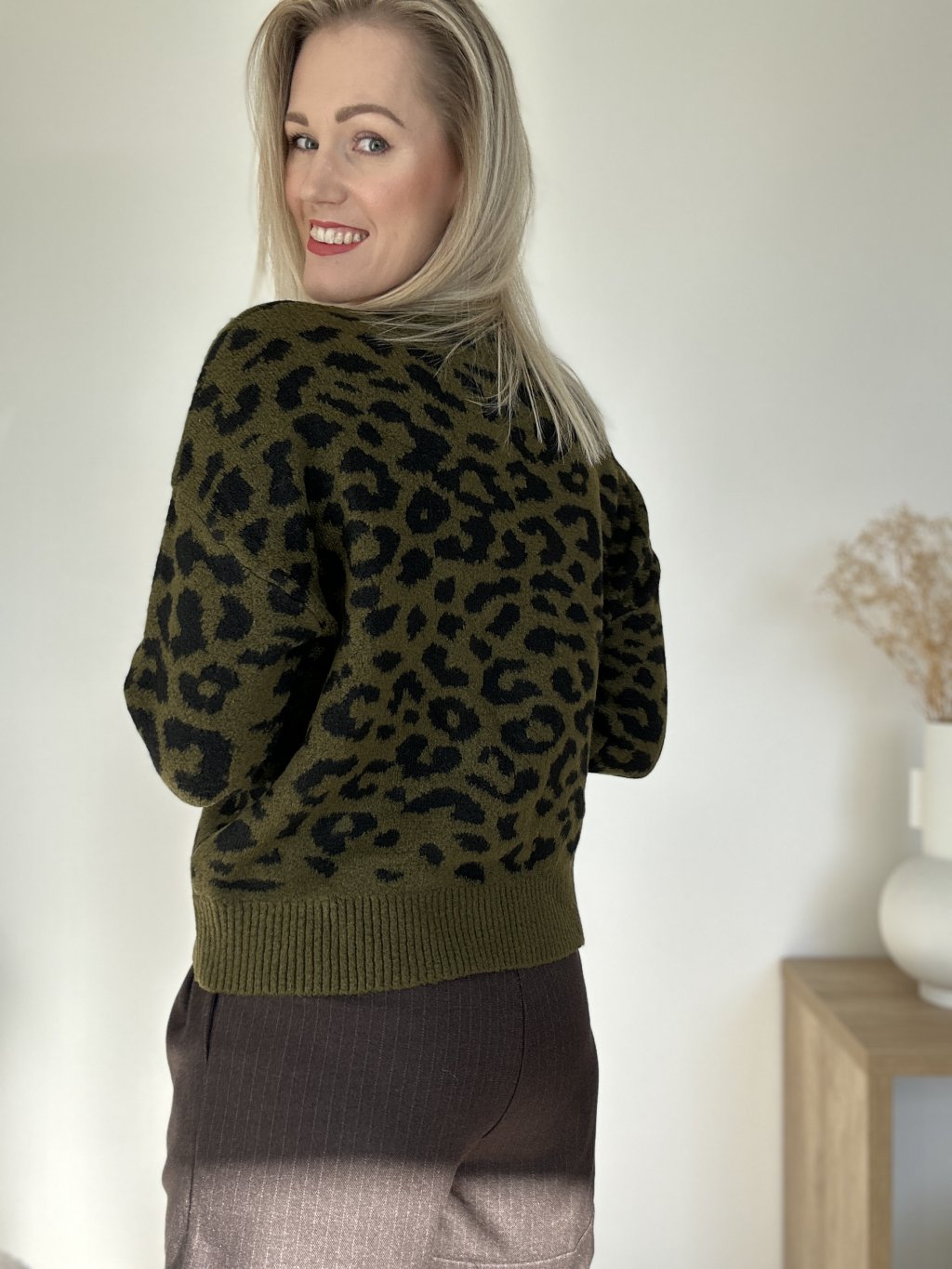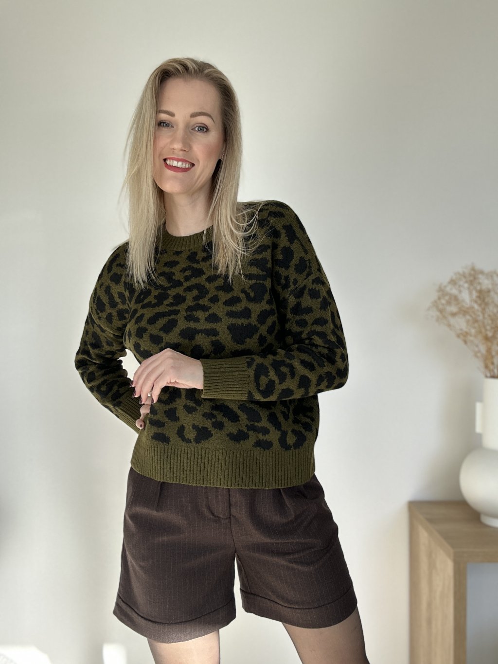 Sveter oversizového strihu s trendovým vzorom. Sedí na veľkosť S/XL.