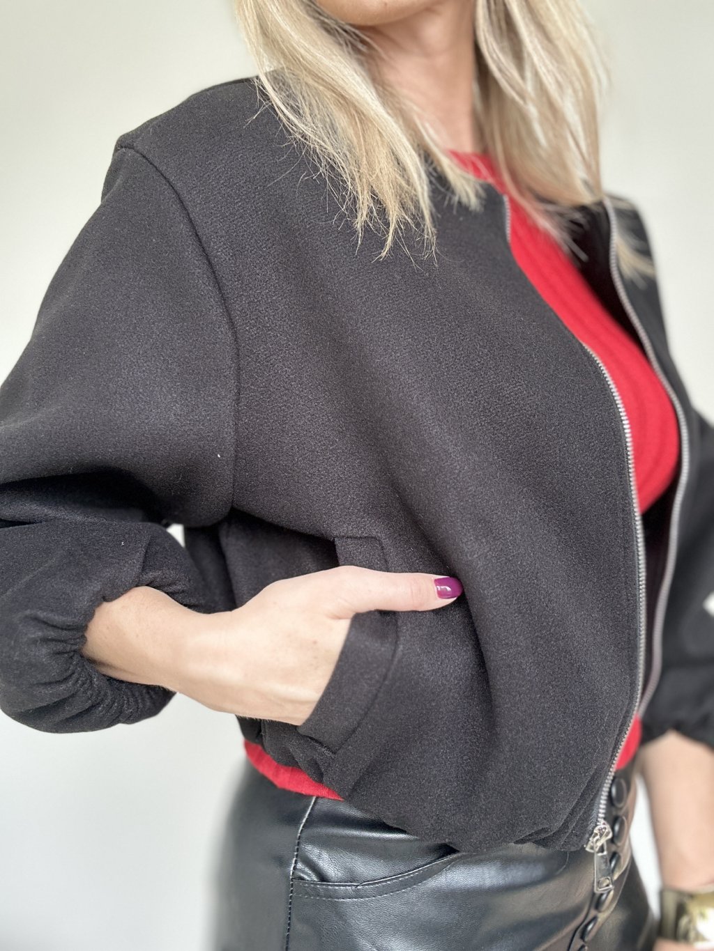 Mäkká bomber bunda hnedá ktorá je podšitáa má zapínanie na zips.