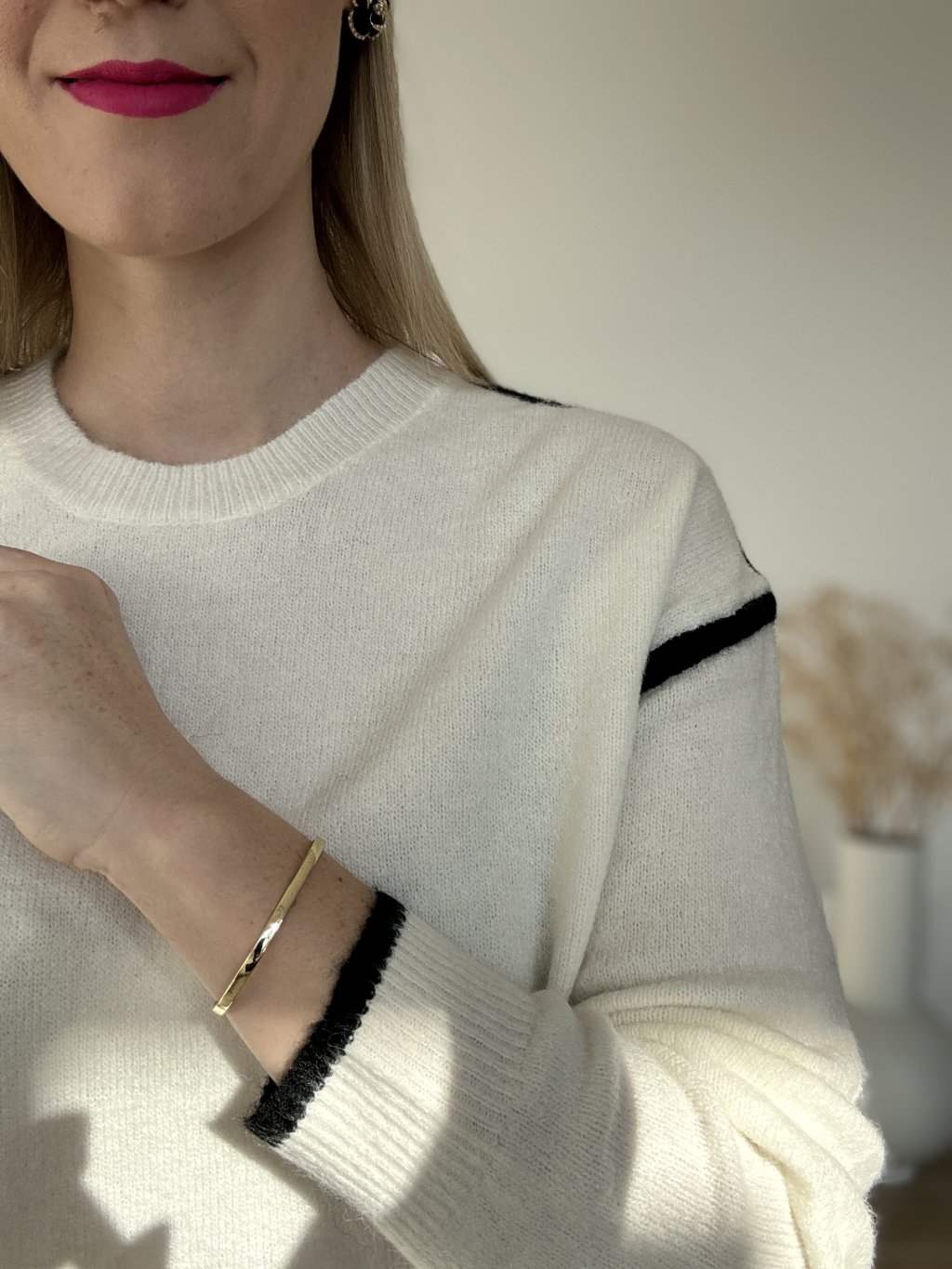 Sveter oversizového strihu a mäkkého materiálu. Sedí na veľkosť M/XL.
