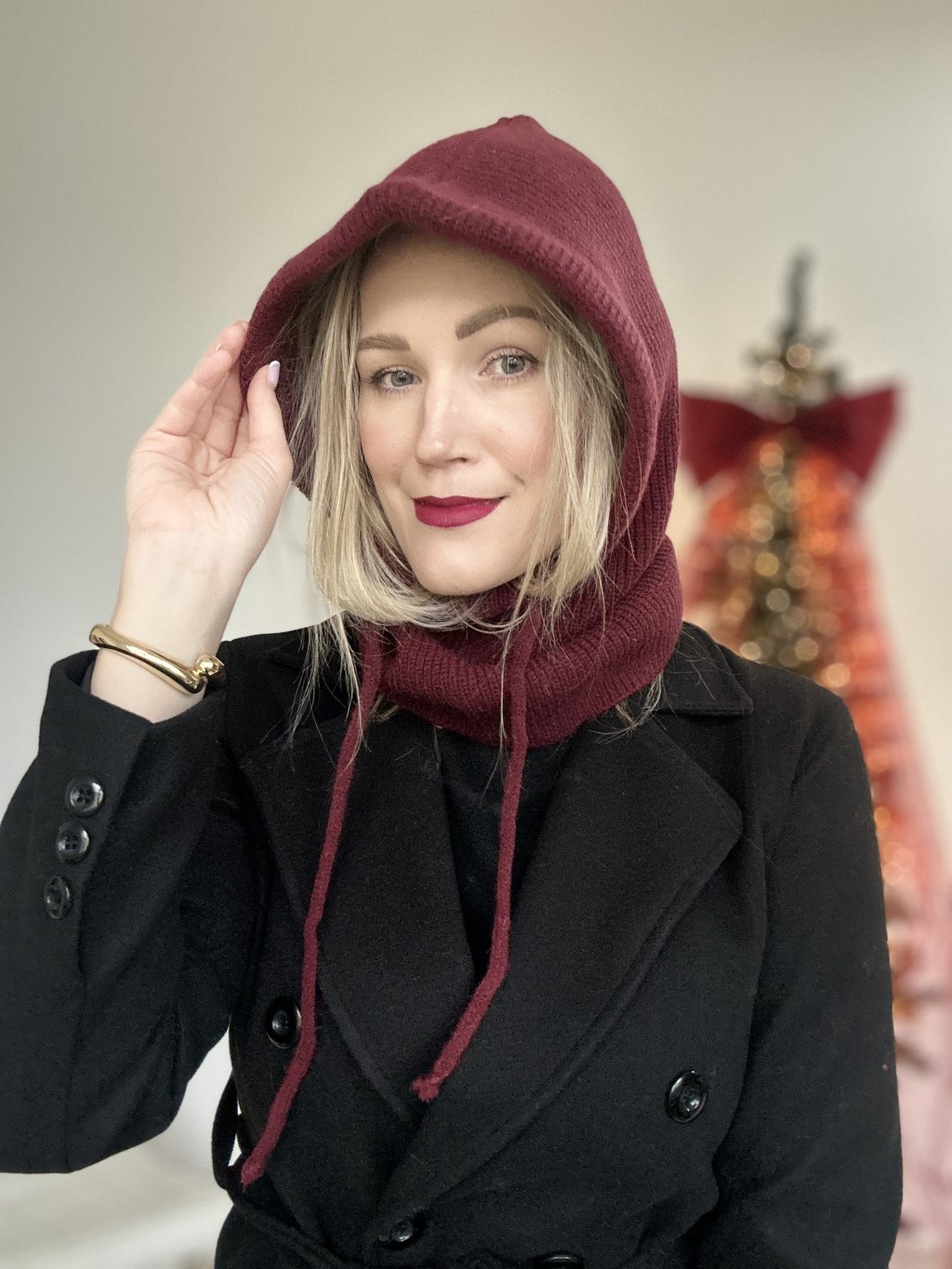 Mäkká pletená kukla so šnúrkami na stiahnutie, ktorá chráni hlavu aj krk a v jednom kúsku nahradí čiapku aj šál. Pohodlne sedí, príjemne hreje a ľahko sa kombinuje s kabátmi aj bundami.