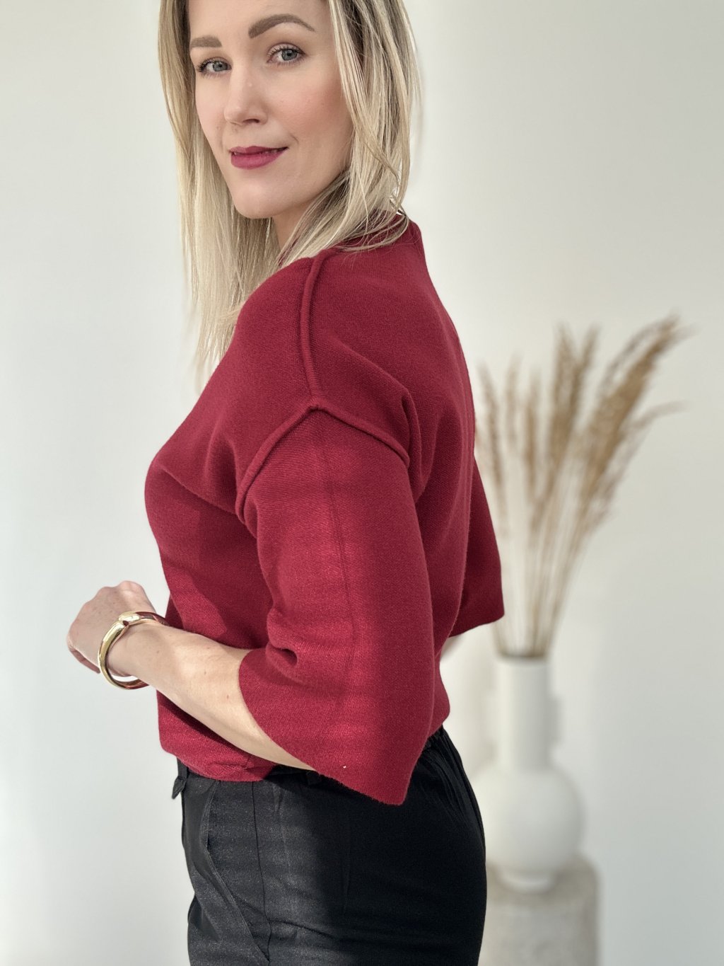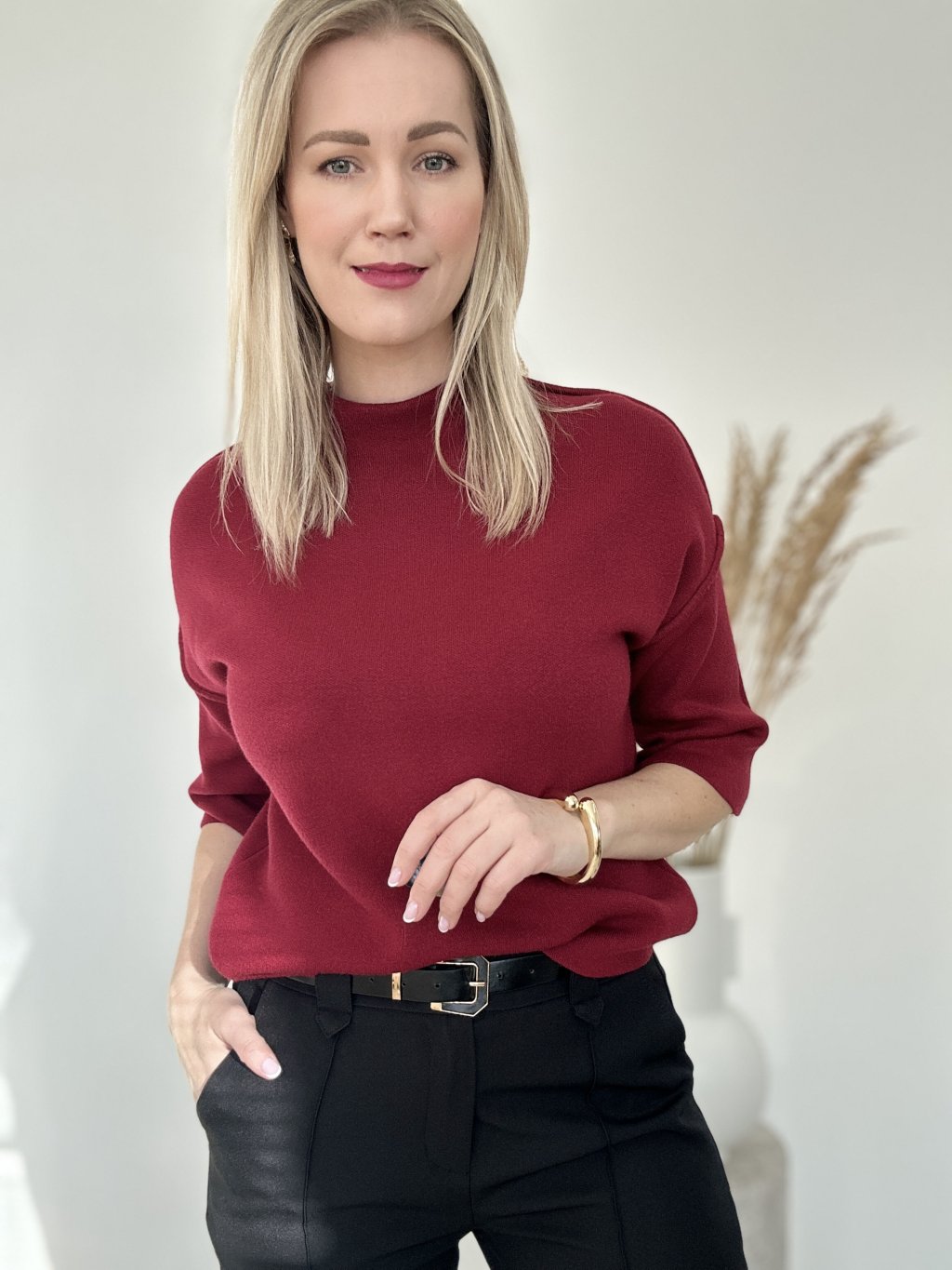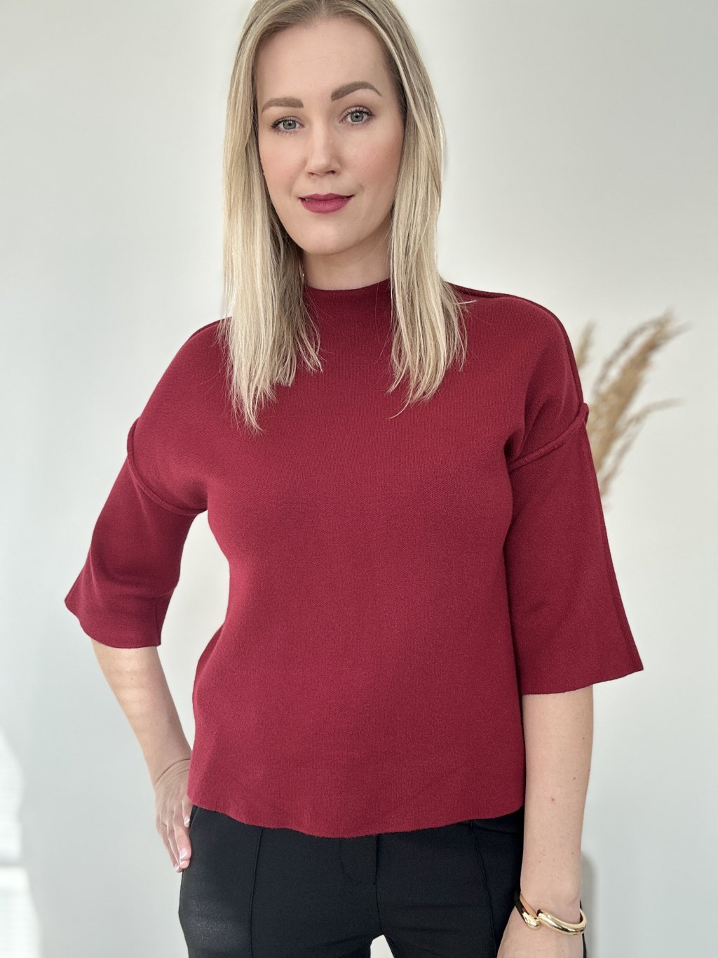 Pletený bordový top s 3/4 rukávmi