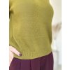 Dámsky pletený top s okrúhlim výstrihom a krátkymi raglánovými rukávmi. Top ideálny na prechodné obdobia alebo letné večery. Spodný okraj a manžety rukávov sú zakončené rebrovaným patentom.