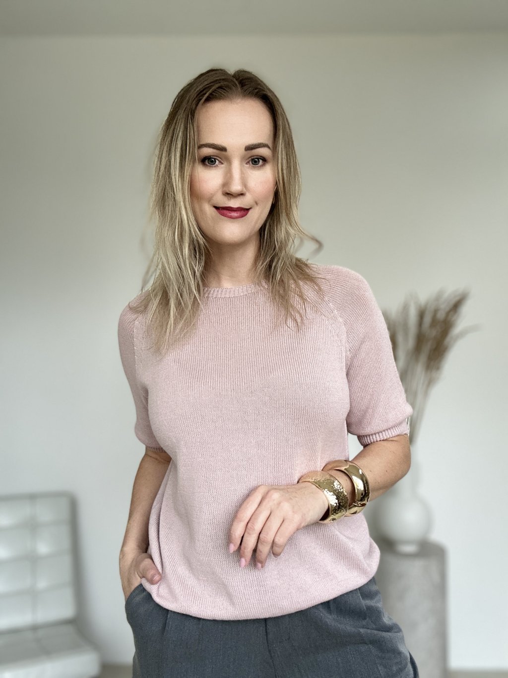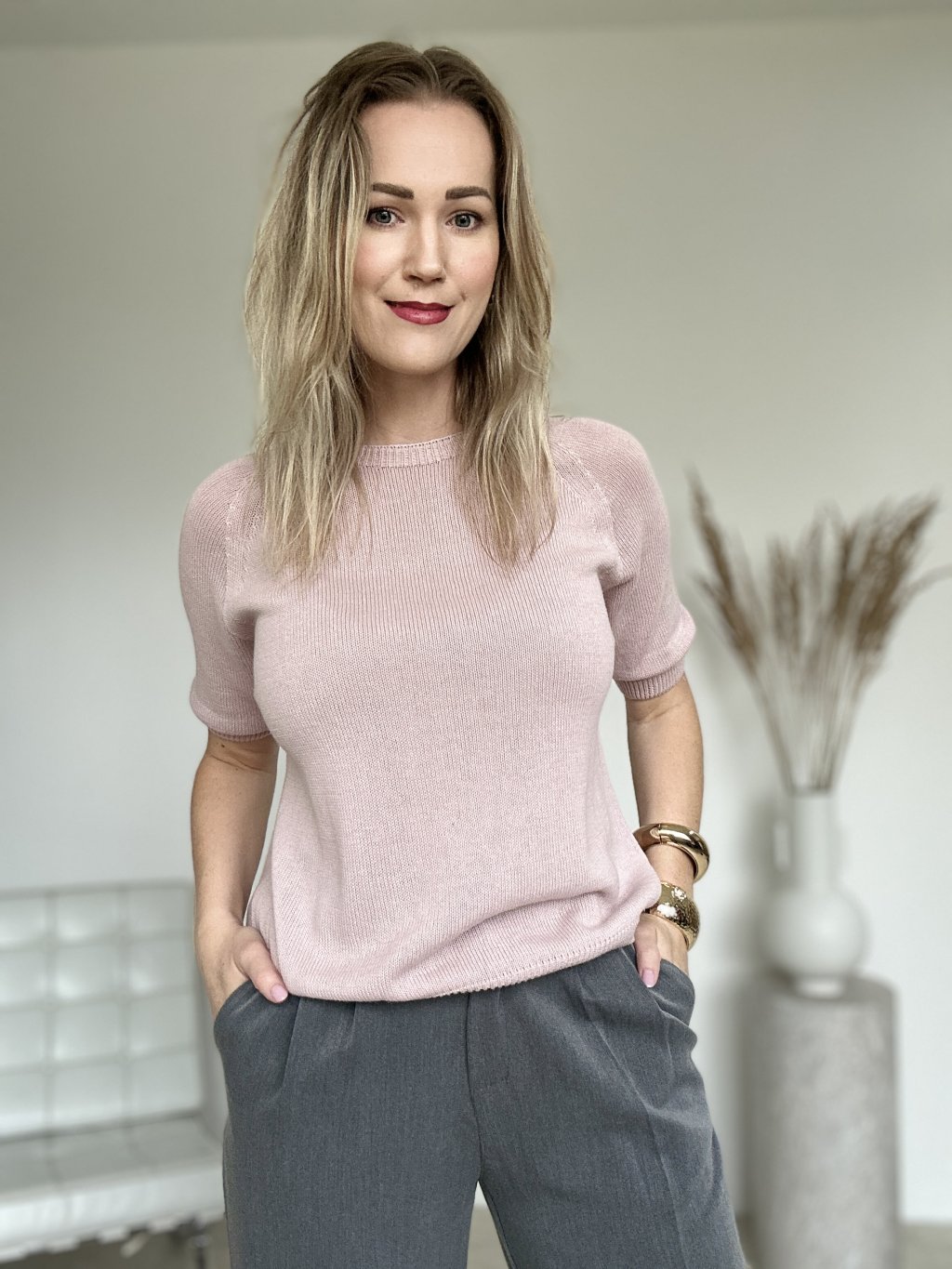 Pekný elastický bavlnený úpletový top s krátkym rukávom.