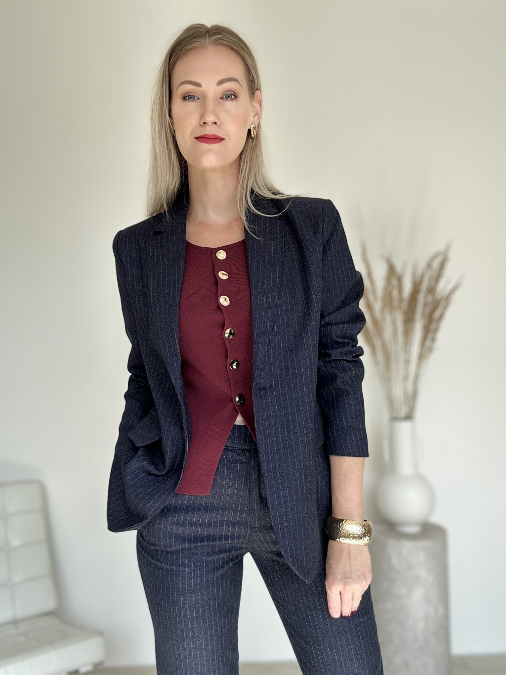 Pásikavé nohavice klasického rovného strihu a príjemného materiálu. Zapínanie je na zips a gombík.