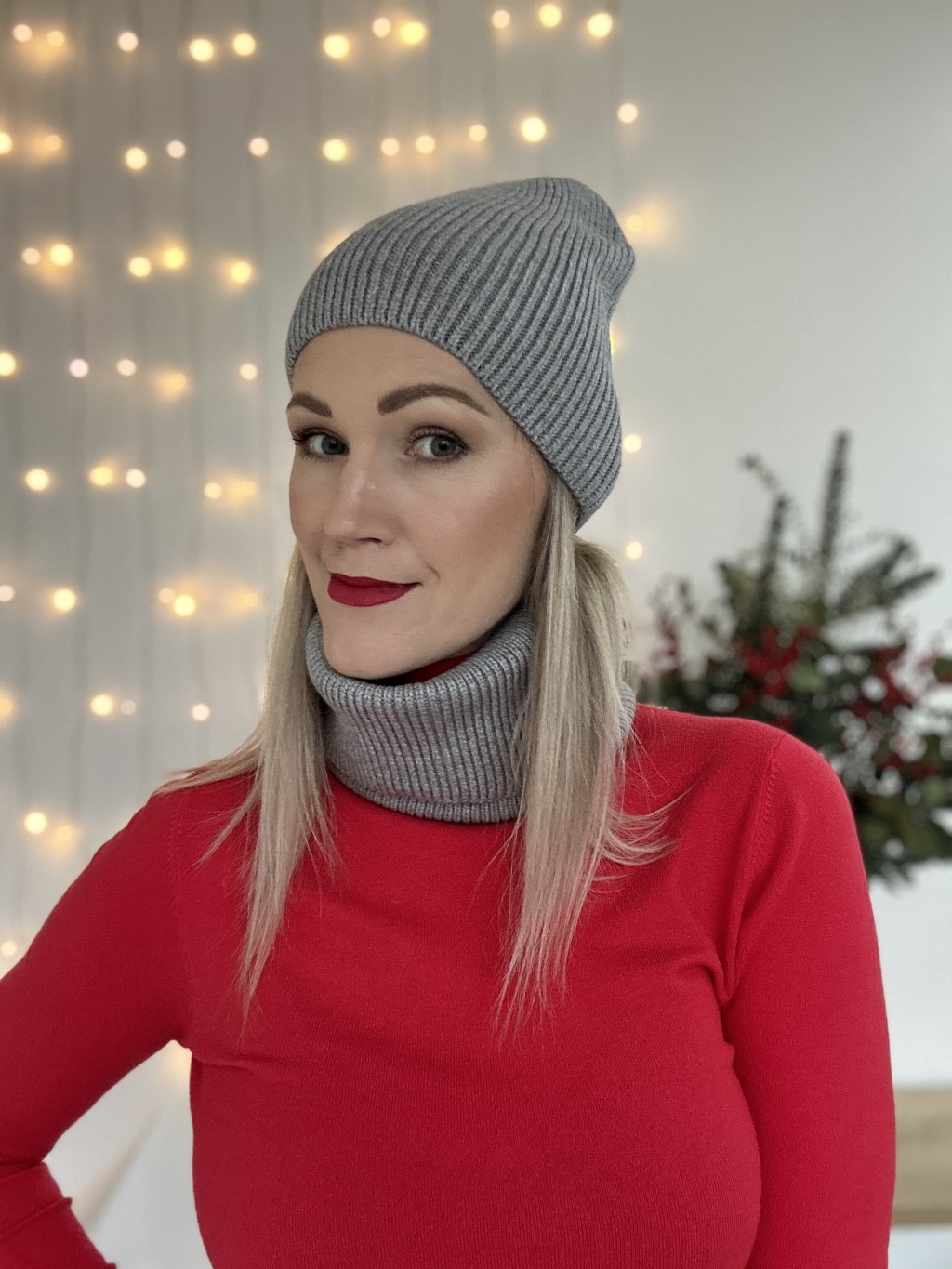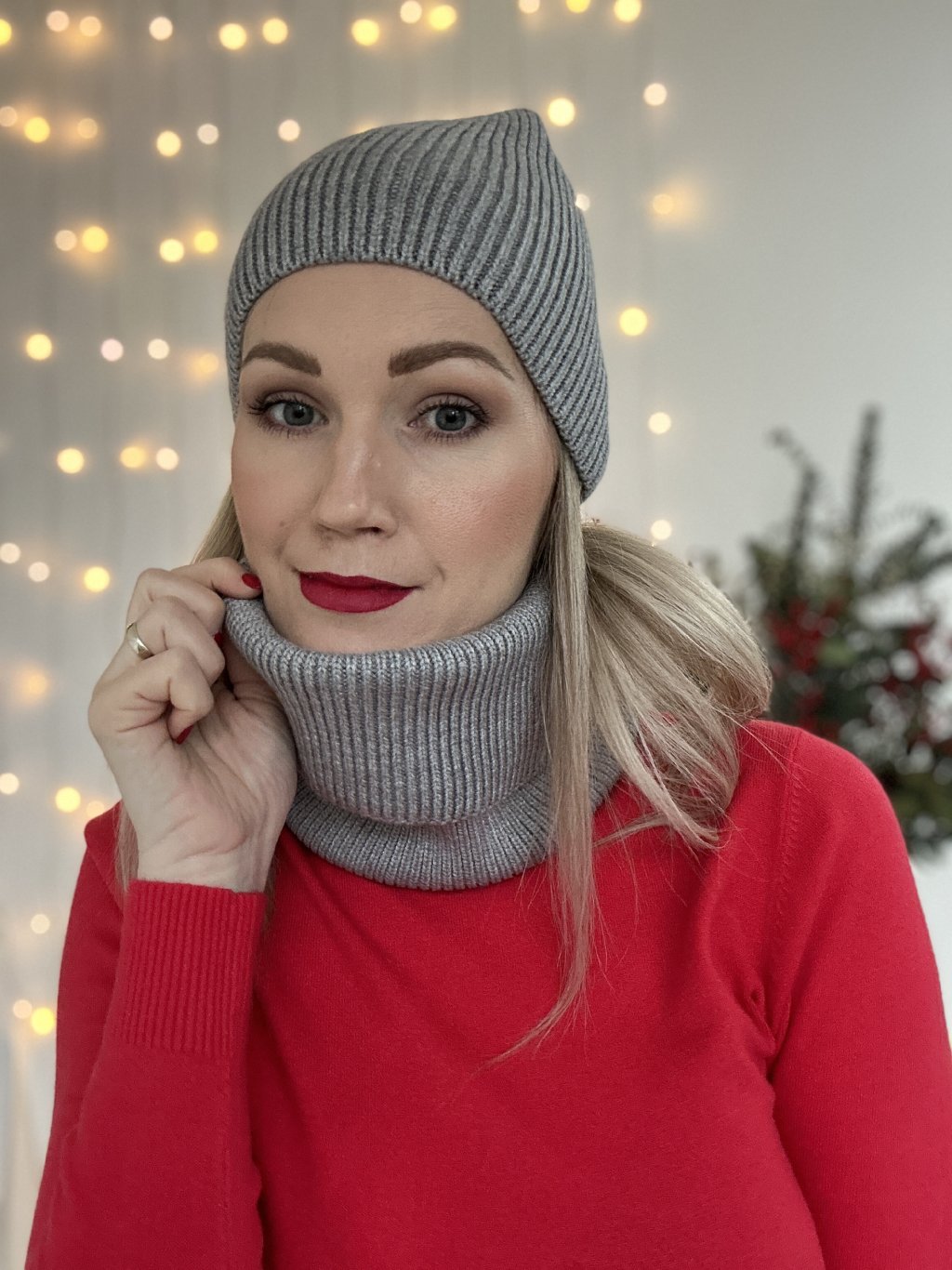 Materiál rebrovaný elastický s prímesou vlny. Šál je tunelového typu.