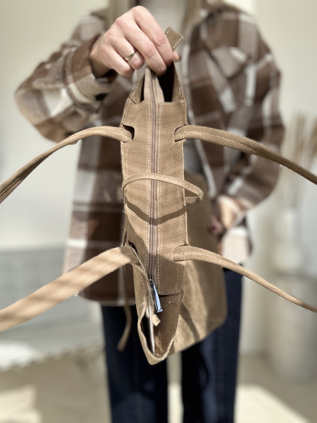 Štýlová semišová kabelka na rameno ideálna na každodenné nosenie. Perfektná k jesenným veciam.