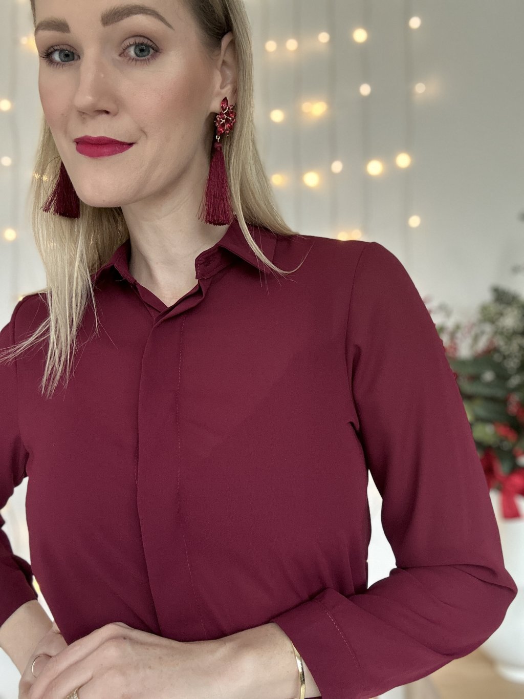 Šifónová blúzka klasického strihu so zapínaním na gombíky. Sedí na veľkosť S/L.
