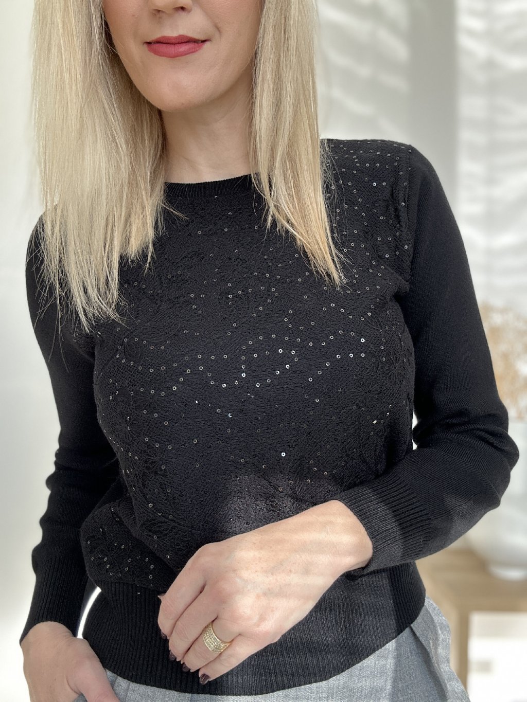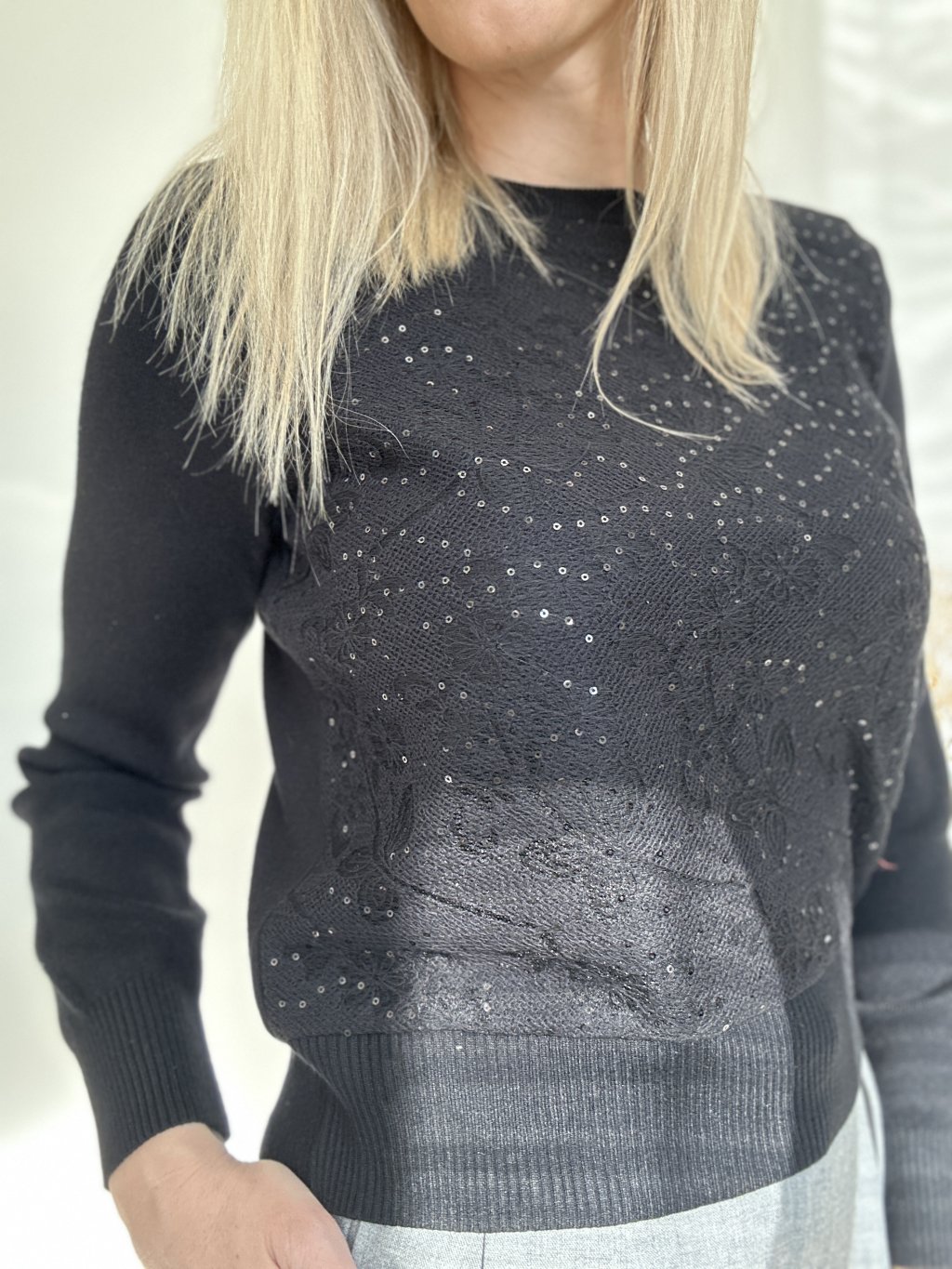 Sveter so vzorom-čierny