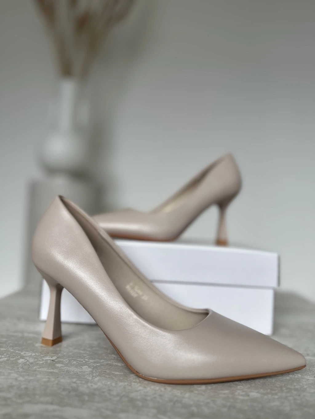 Klasické telové koženkové lodičky s výškou opätku 8 cm.