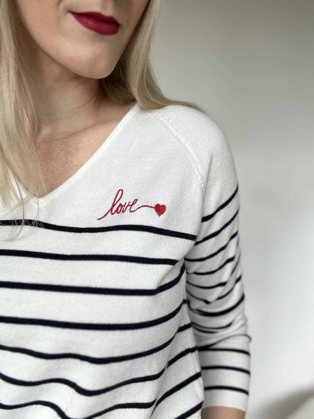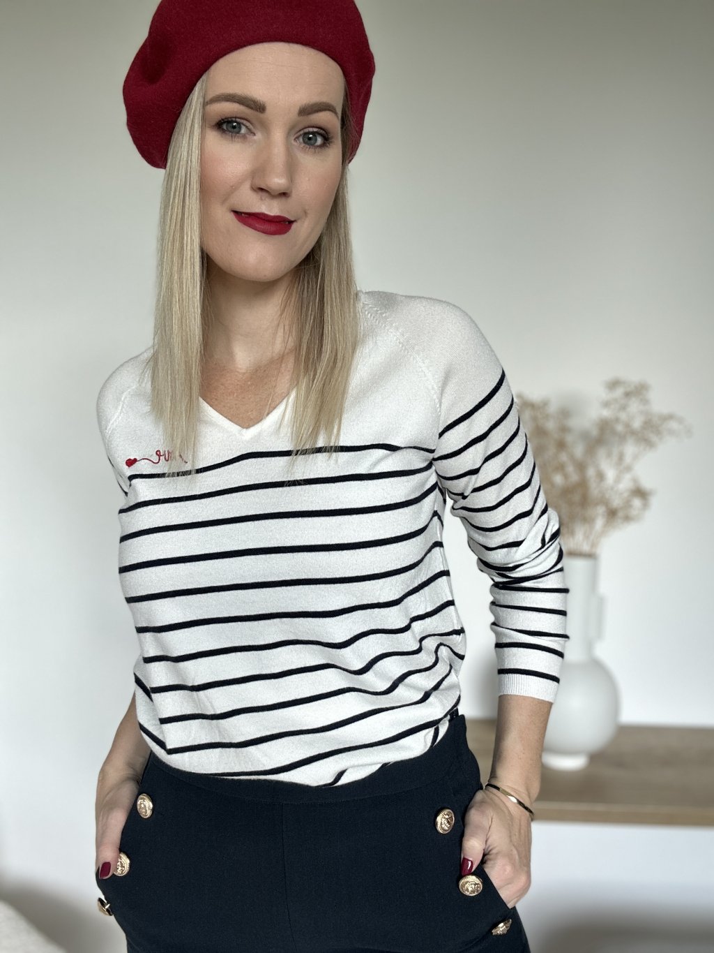 Tenký elastický sveter klasického strihu s modernými prúžkami.