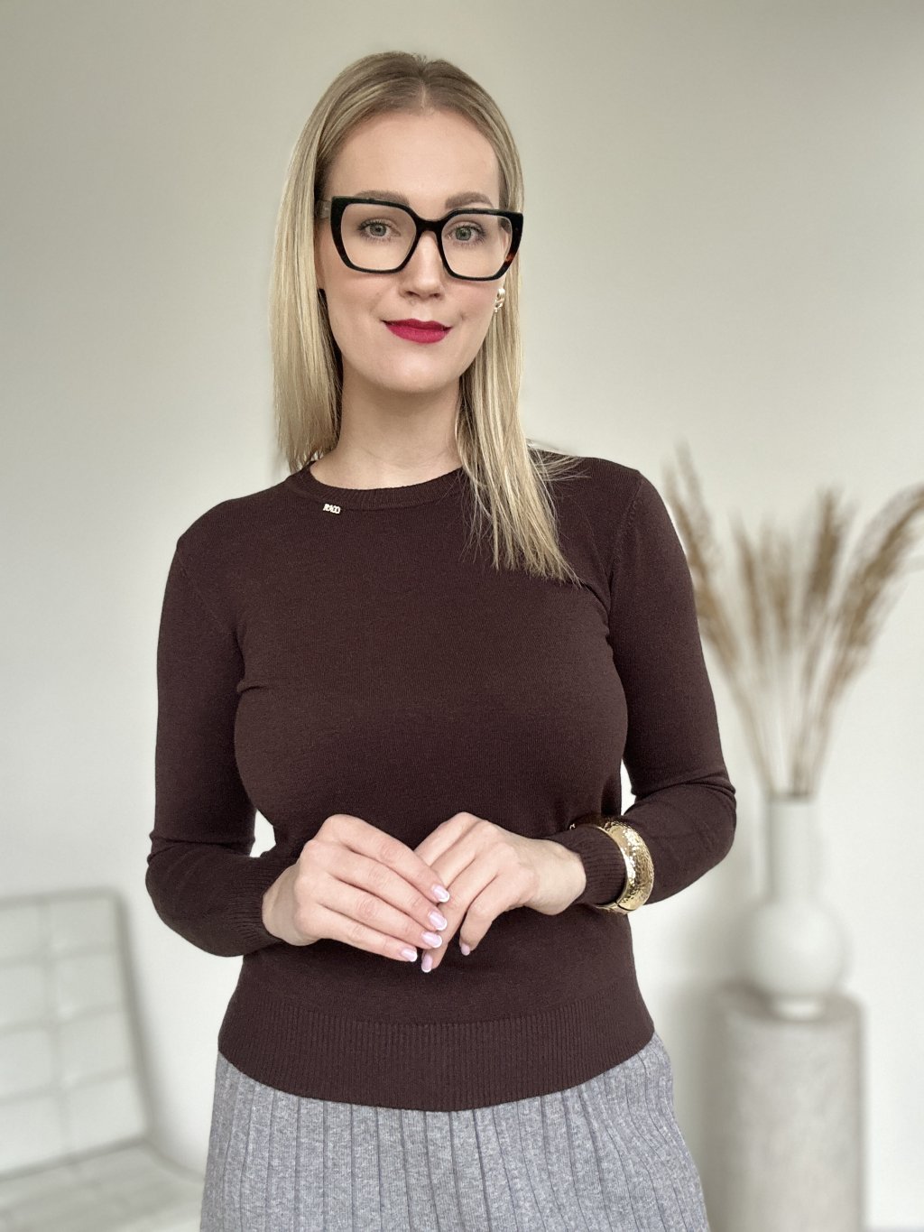 Jednoduchý tenký viskózoví basic sveter s ozdobou.