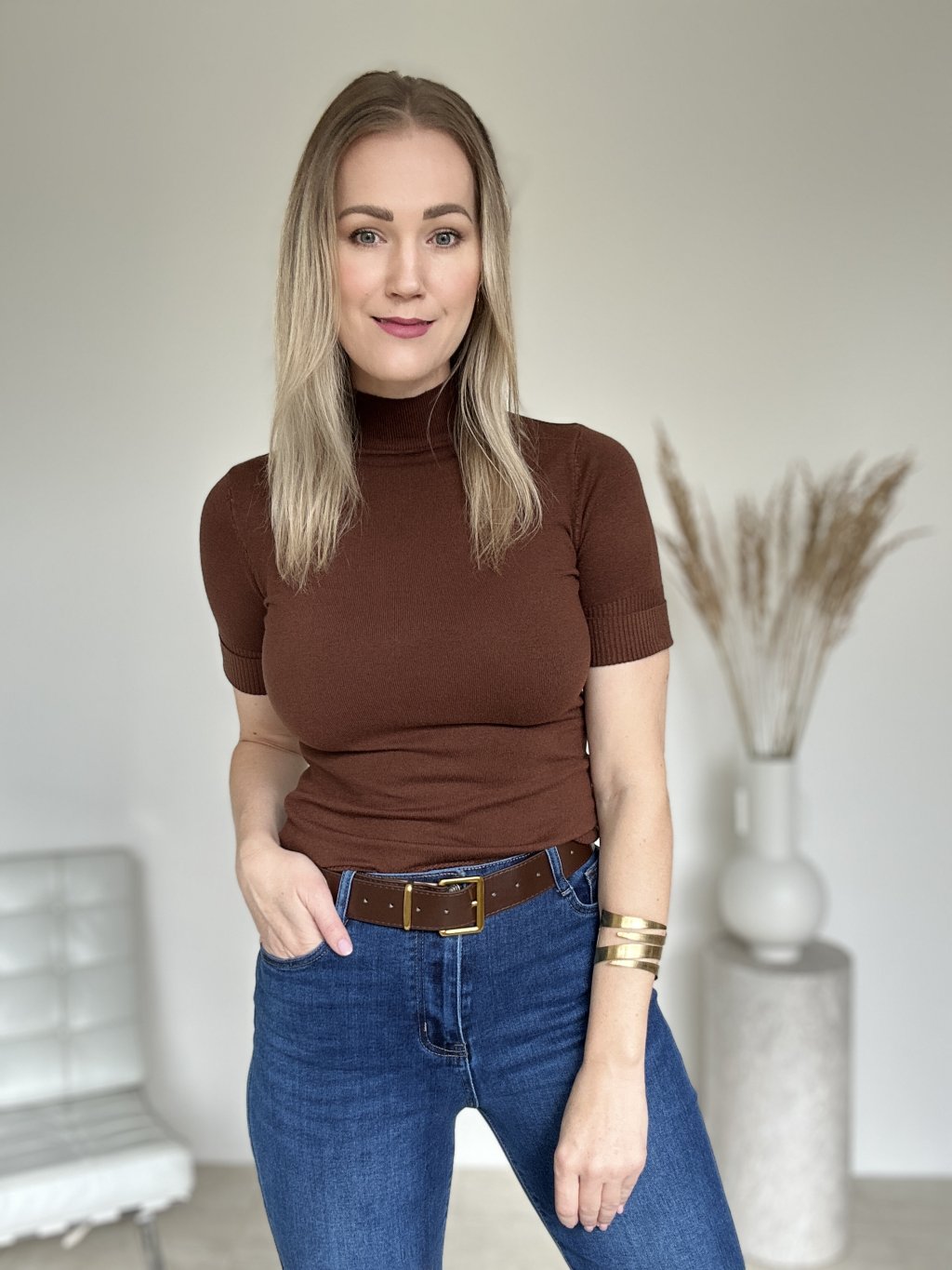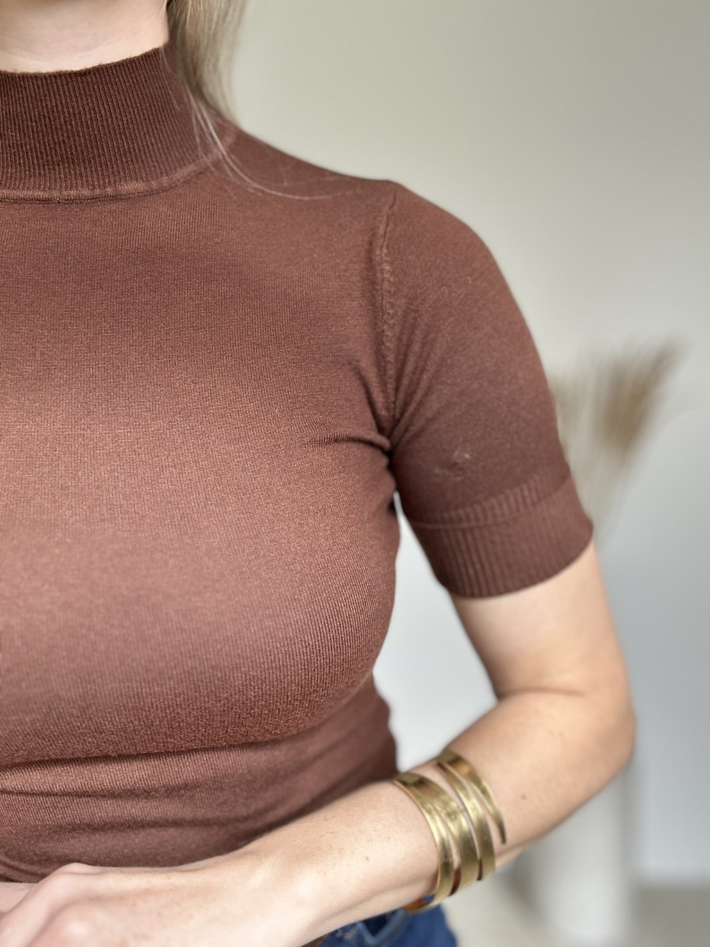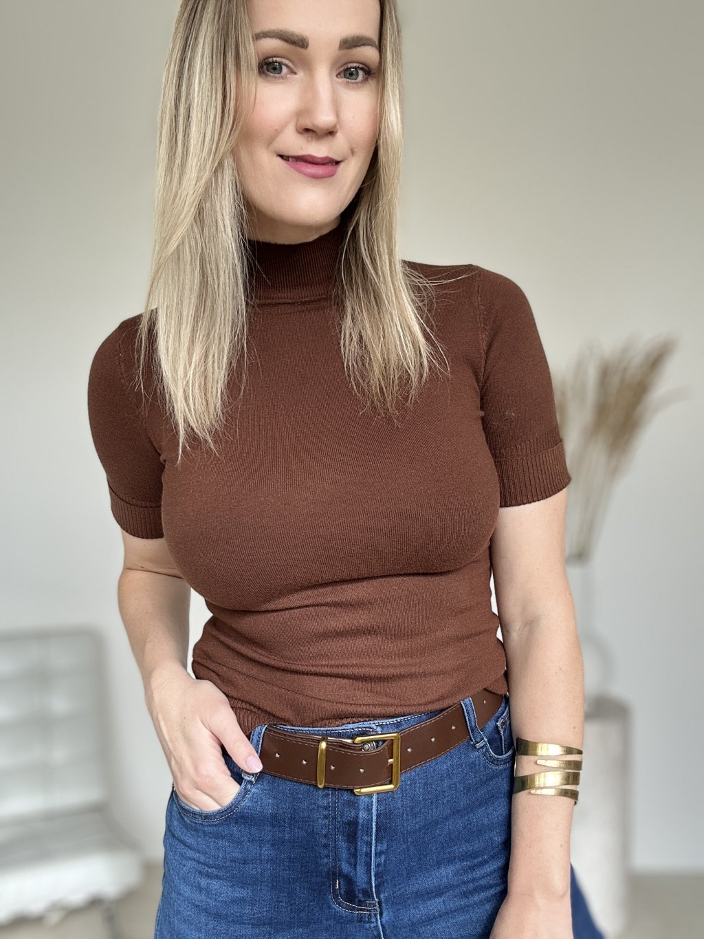 Jemný elastický jednoduchý polorolák s krátkym rukávom.