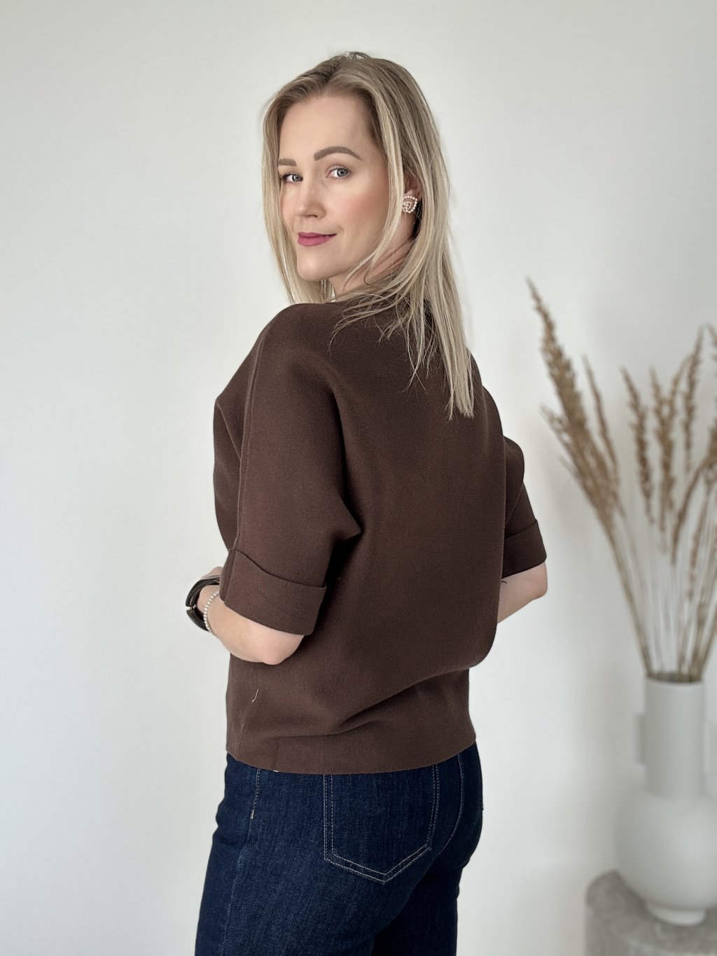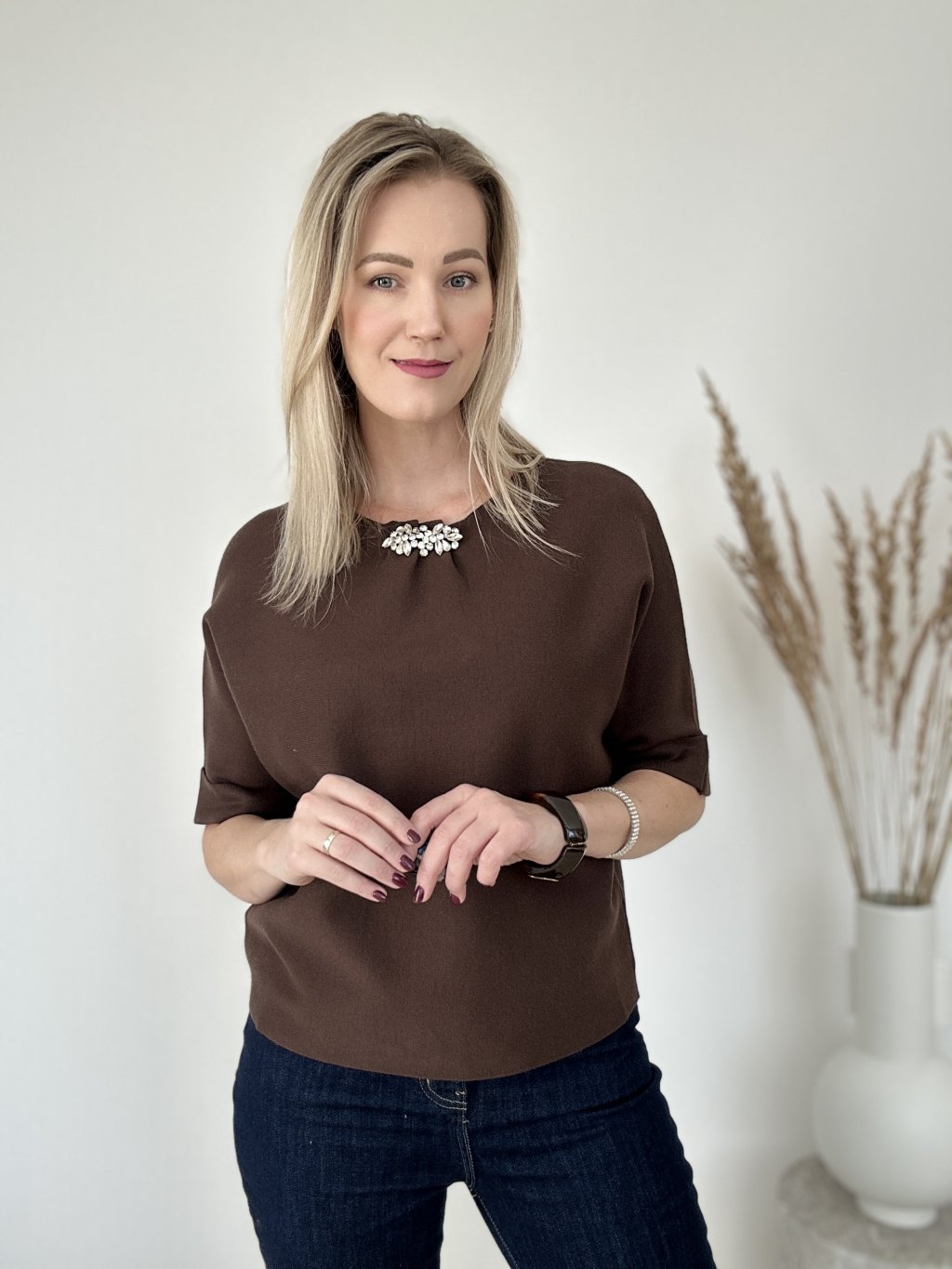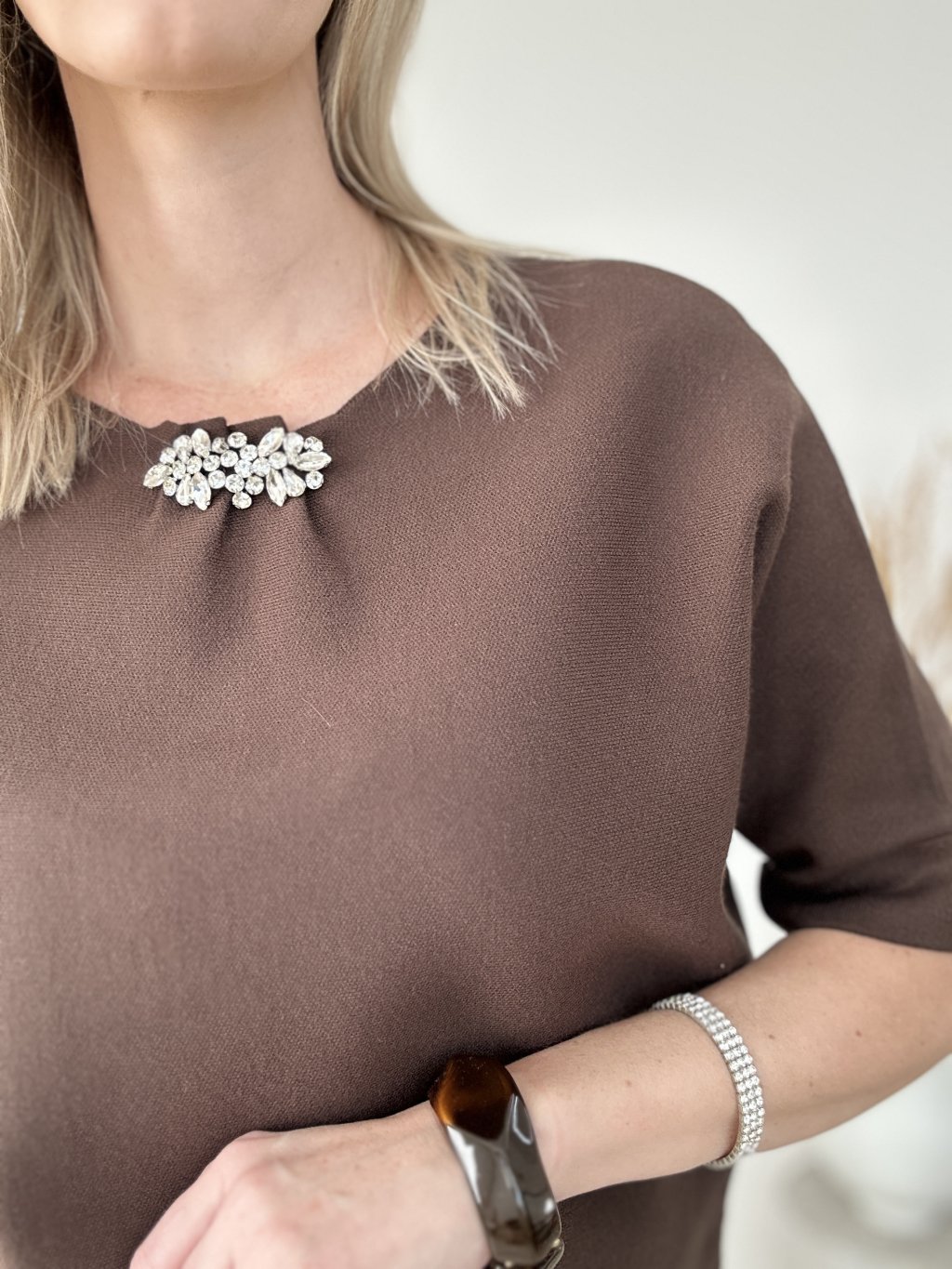 Úpletový top so štrasom hnedý
